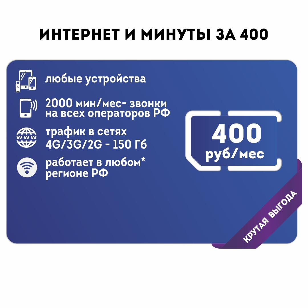 Тариф для телефона, Тариф для роутера NTmobile Интернет и минуты за 400 (Вся Россия)