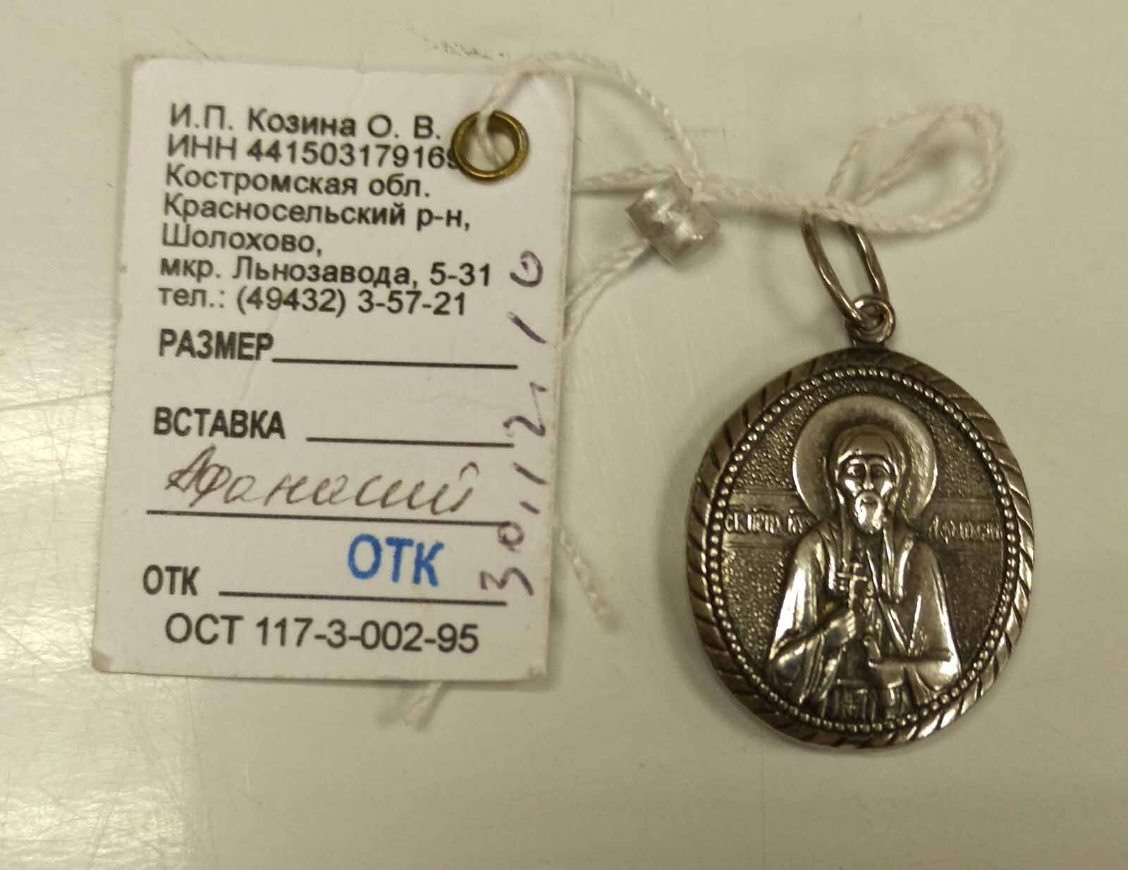 Подвеска " Св. Афанасий", серебро 925 проба, 4,71 гр.