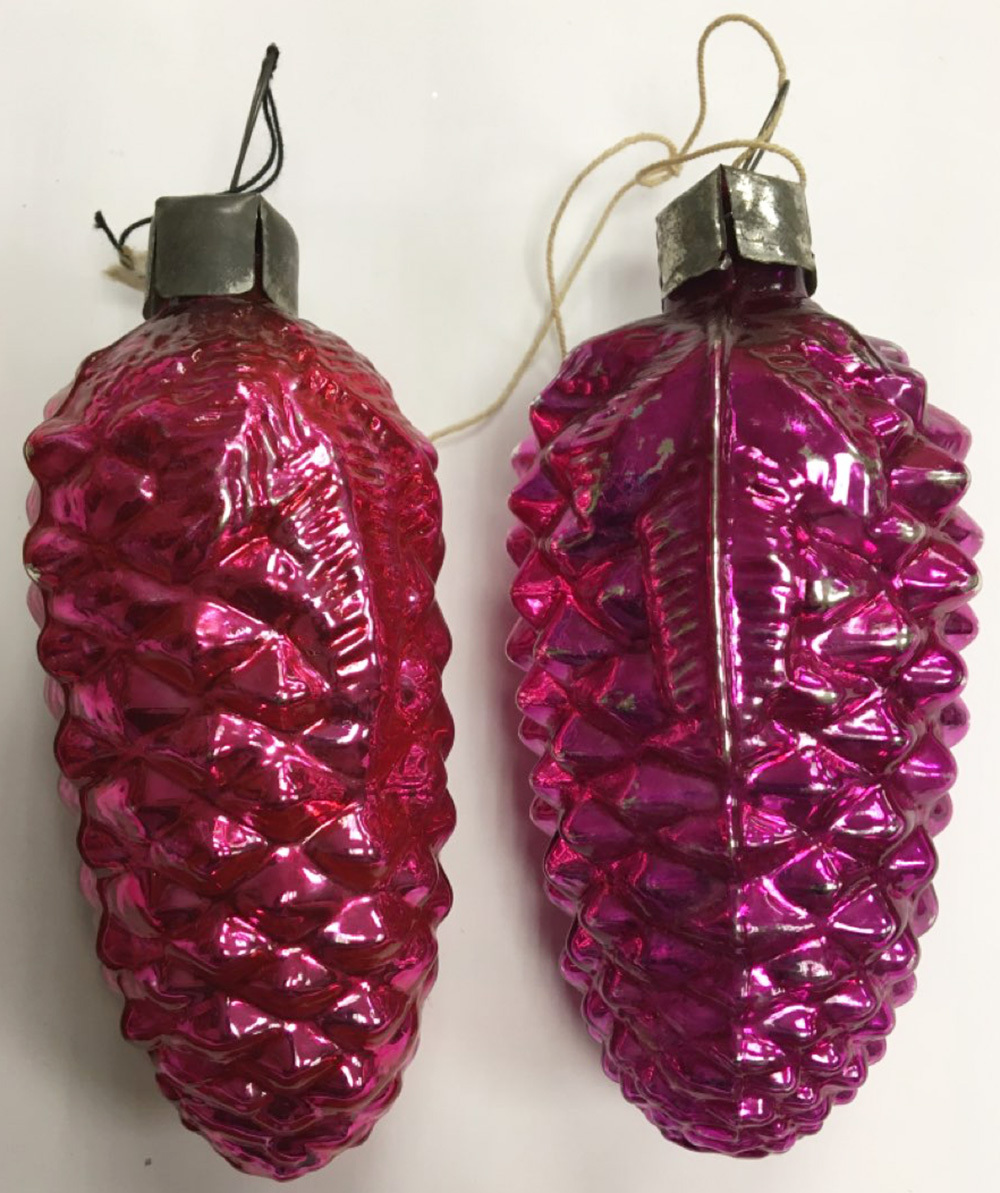 Набор ёлочных игрушек "Шишки", СССР, стекло, 2 шт. (сост. на фото)