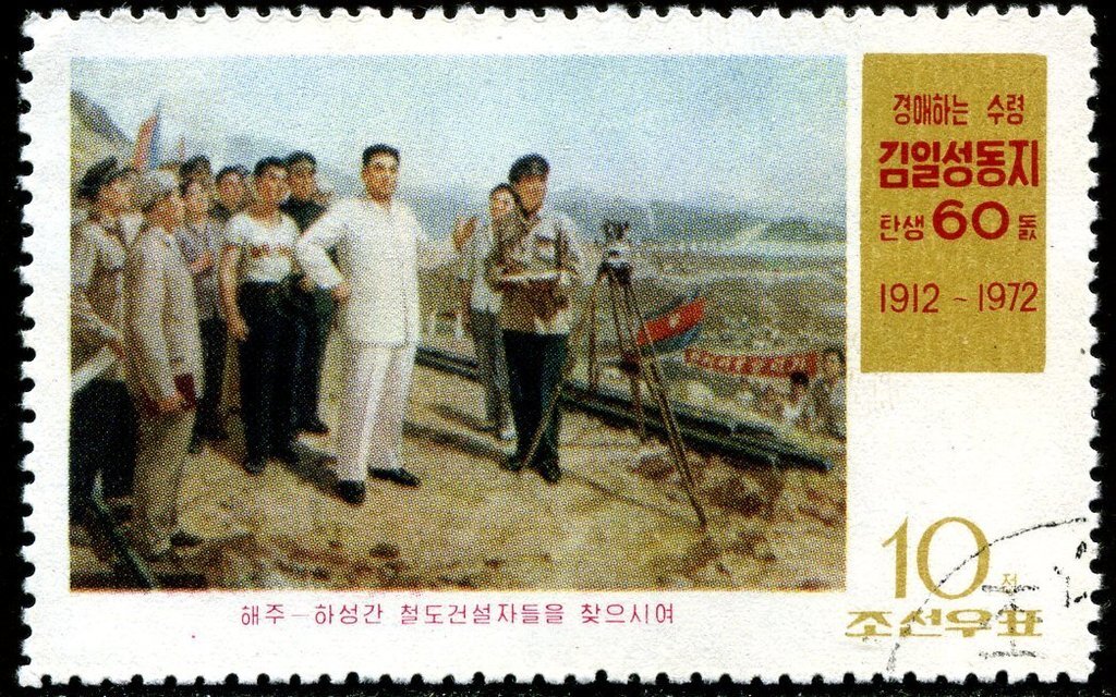 (1972-024) Марка Северная Корея "На железной дороге" 60 лет со дня рождения Ким Ир Сена III гашеная