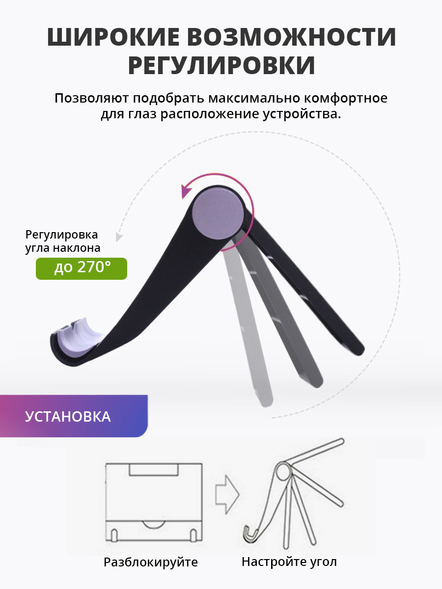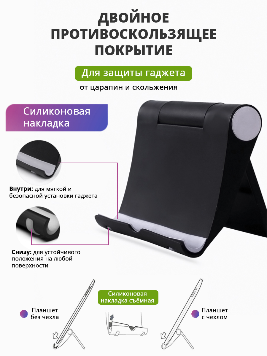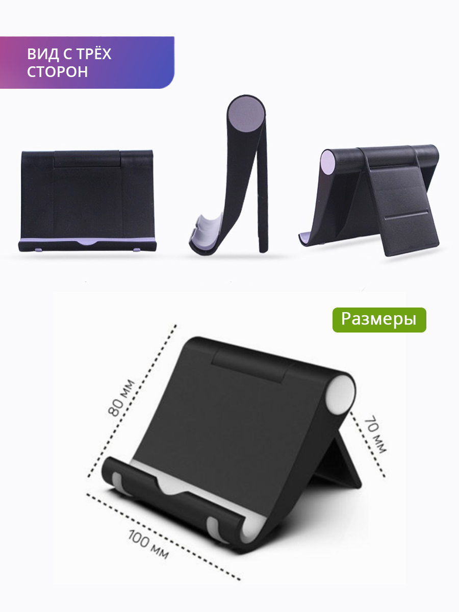 Подставка для электроники мини/ размер 10*8*2 см/ цвет черный/ ОБЕD