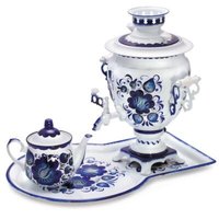 Самовар "Вечерок" с чайником 2 л. (гжель)