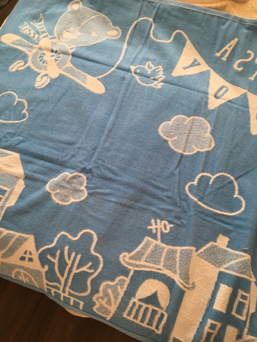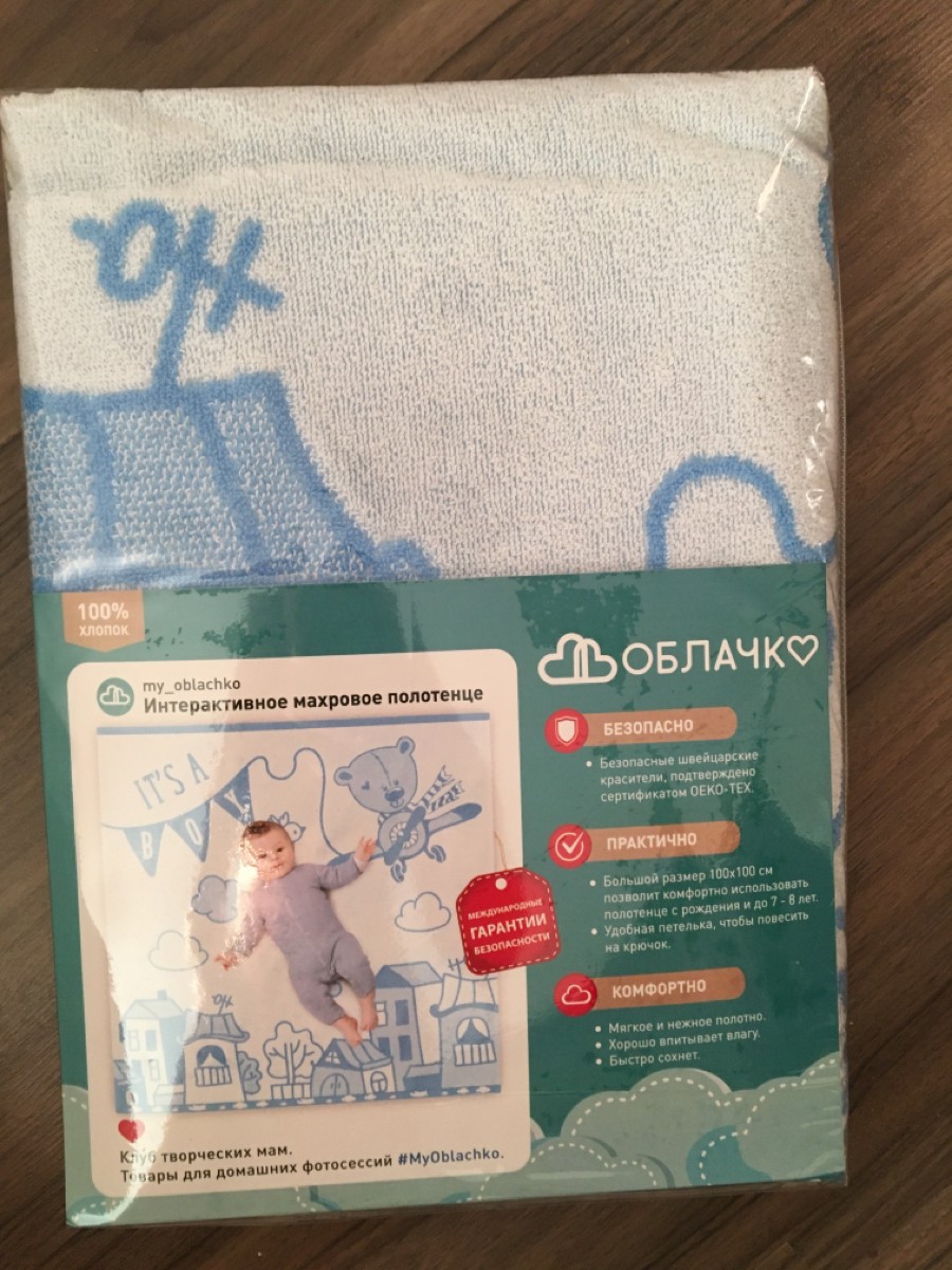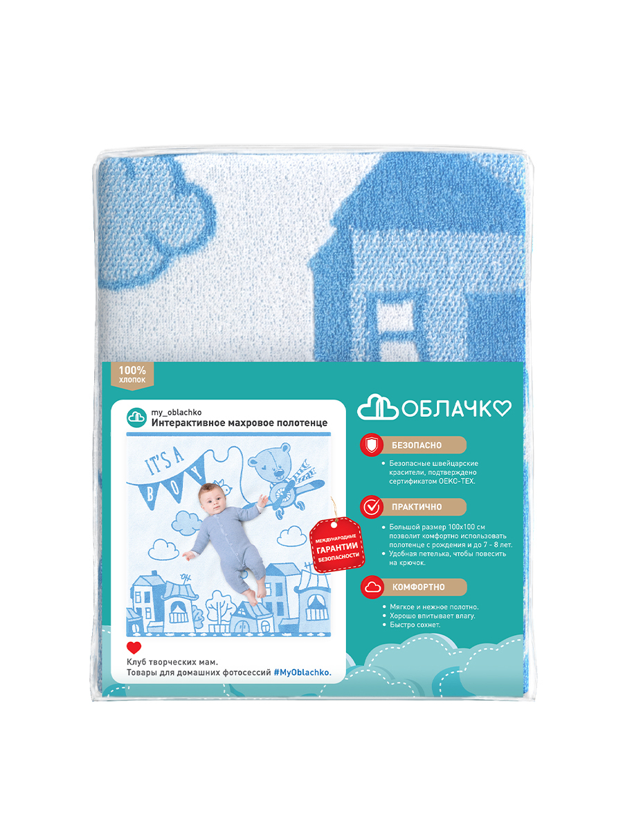 Махровое детское полотенце Облачко 100х100см дизайн "Its a boy", цвет Спокойный синий/белый, плотность 420г/м2, 100% хлопок