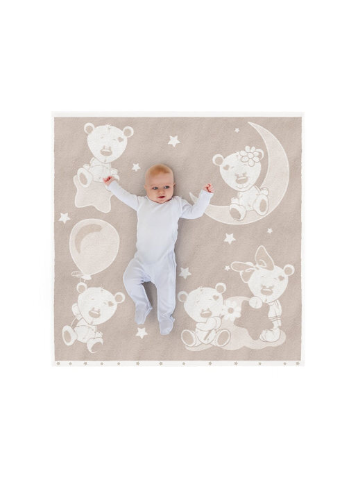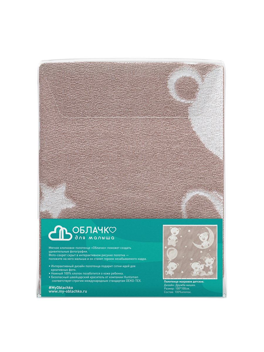Полотенце детское махровое Облачко дизайн "Дружба Мишек" цвет Бежевый 100х100см, хлопок 100%