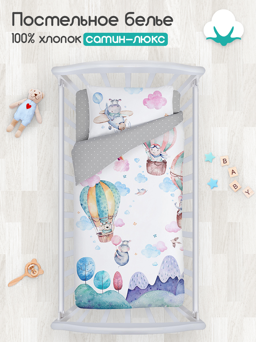 Комплект детского постельного белья в кроватку Облачко дизайн "Dream", наволочка 40х60, сатин-люкс, 100% хлопок