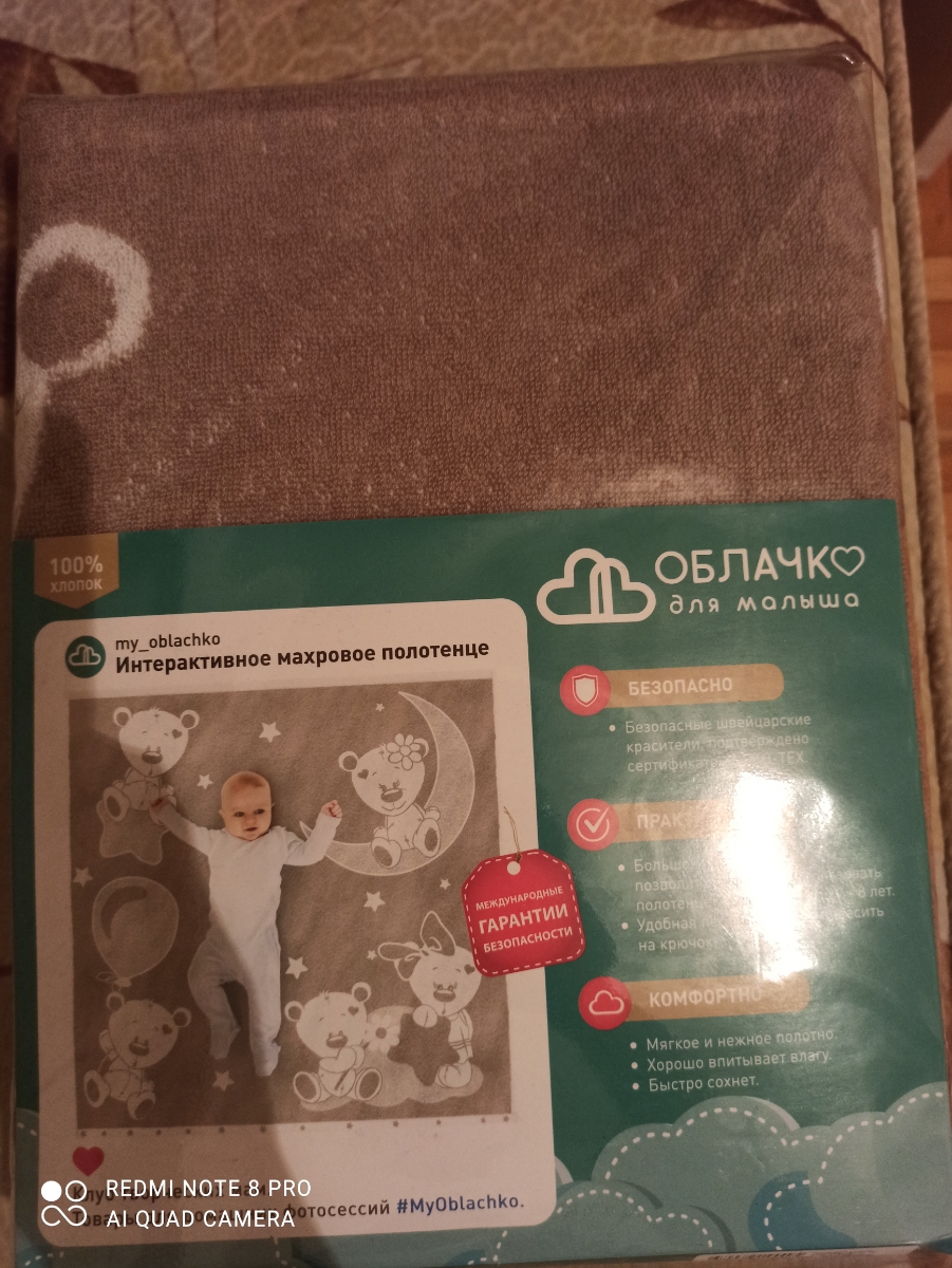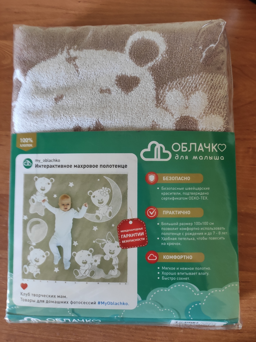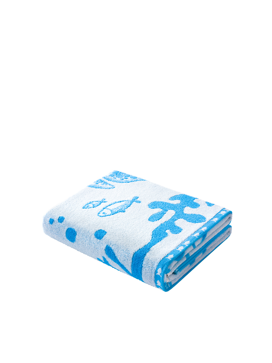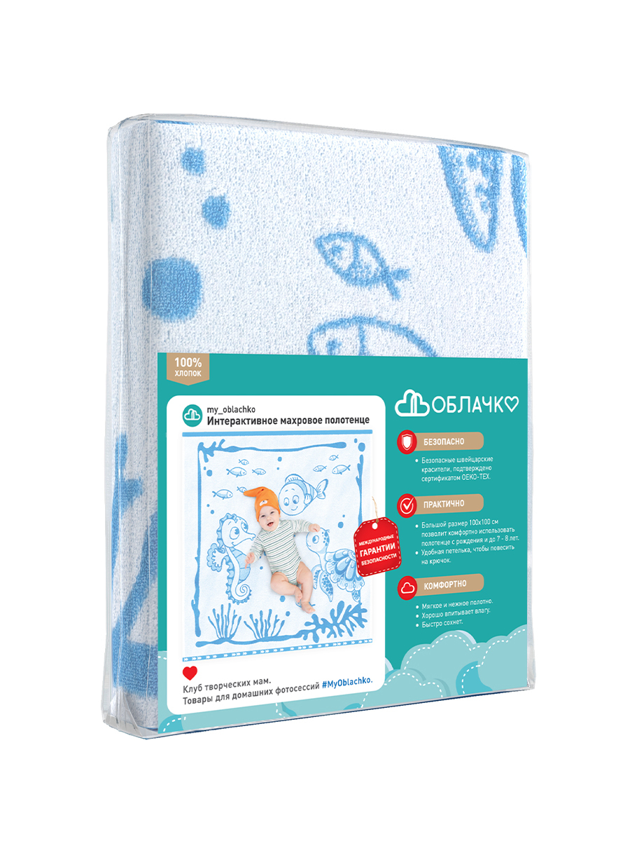 Махровое детское полотенце Облачко 100х100см дизайн "Морской мир", плотность 420г/м2, 100% хлопок