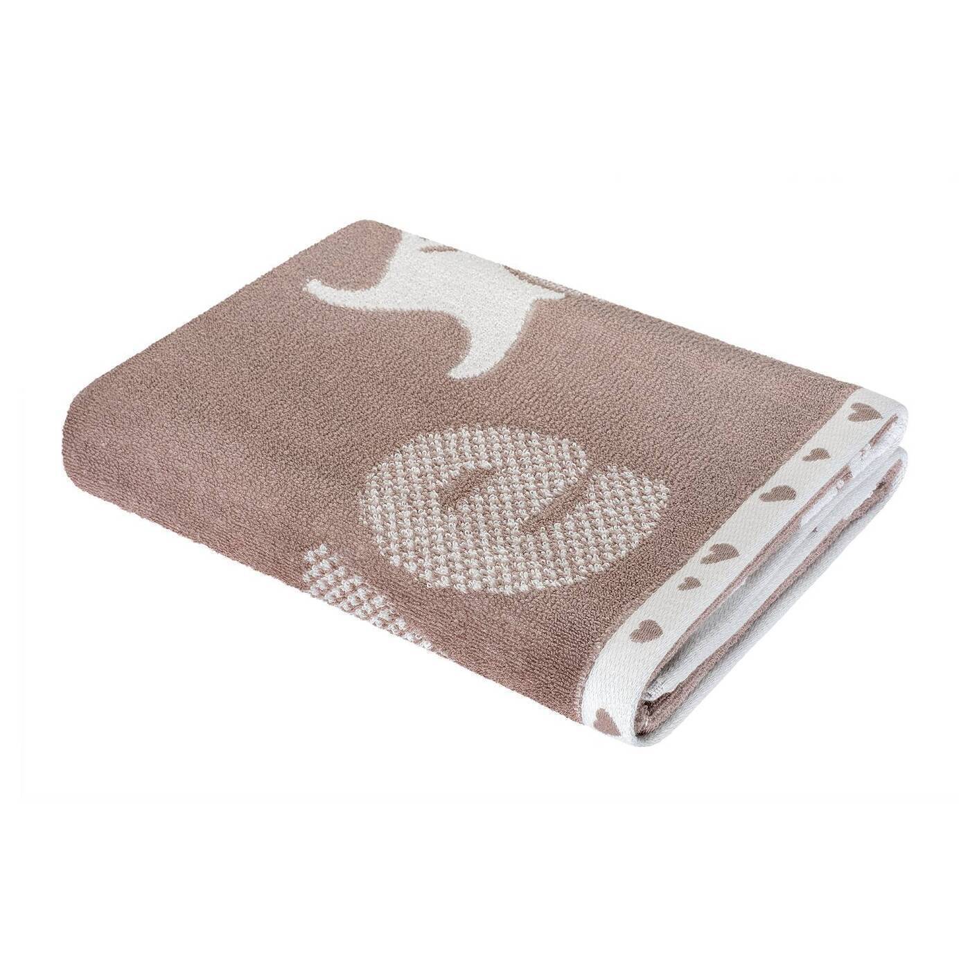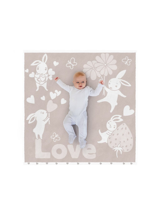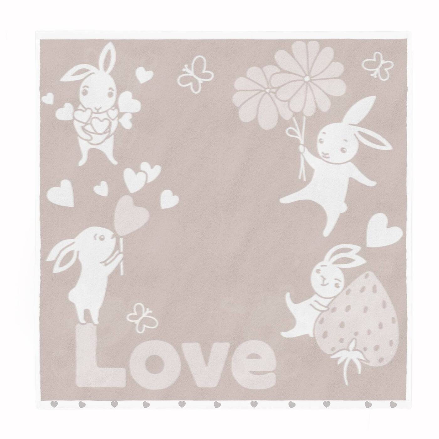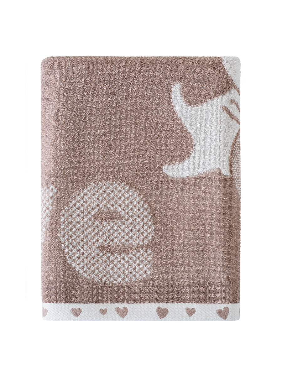 Полотенце детское махровое Облачко дизайн "Зайки Love" цвет Бежевый 100х100см, хлопок 100%, плотность 420г/м2