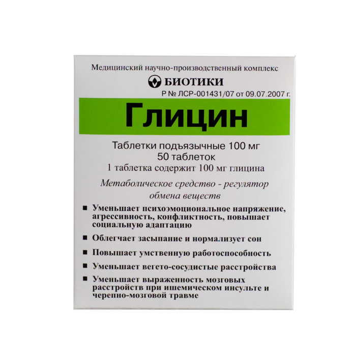 Глицин 100 мг 50 шт. таблетки подъязычные