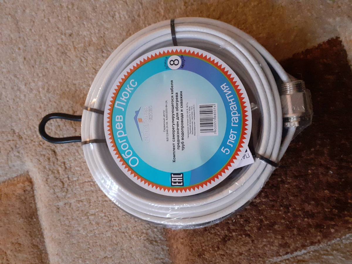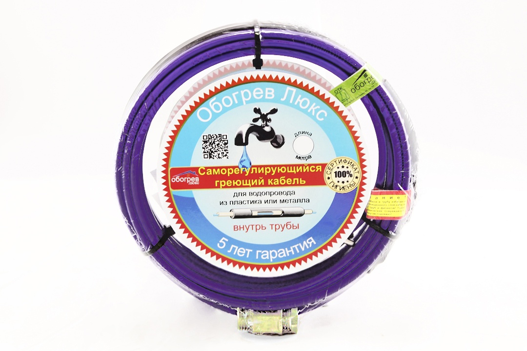 Греющий кабель Обогрев Люкс в трубу, 8м 120Вт