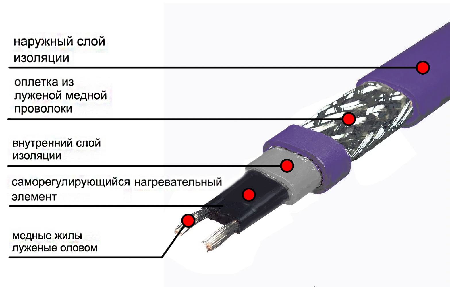 Саморегулирующийся греющий кабель PSK 15-2 ВТ внутрь трубы на отрез 4 м