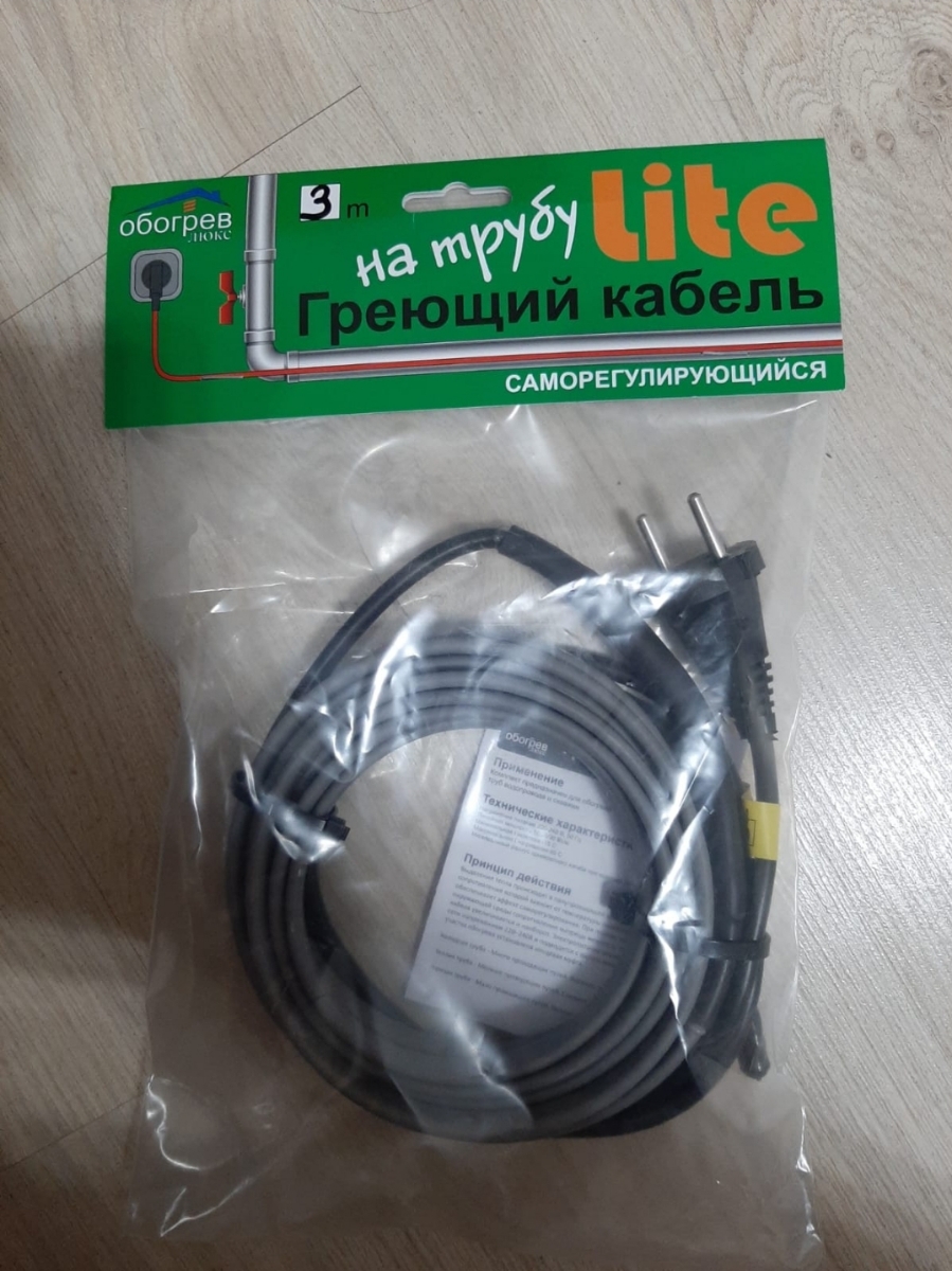 Греющий кабель Обогрев Люкс на трубу, 3м 48Вт