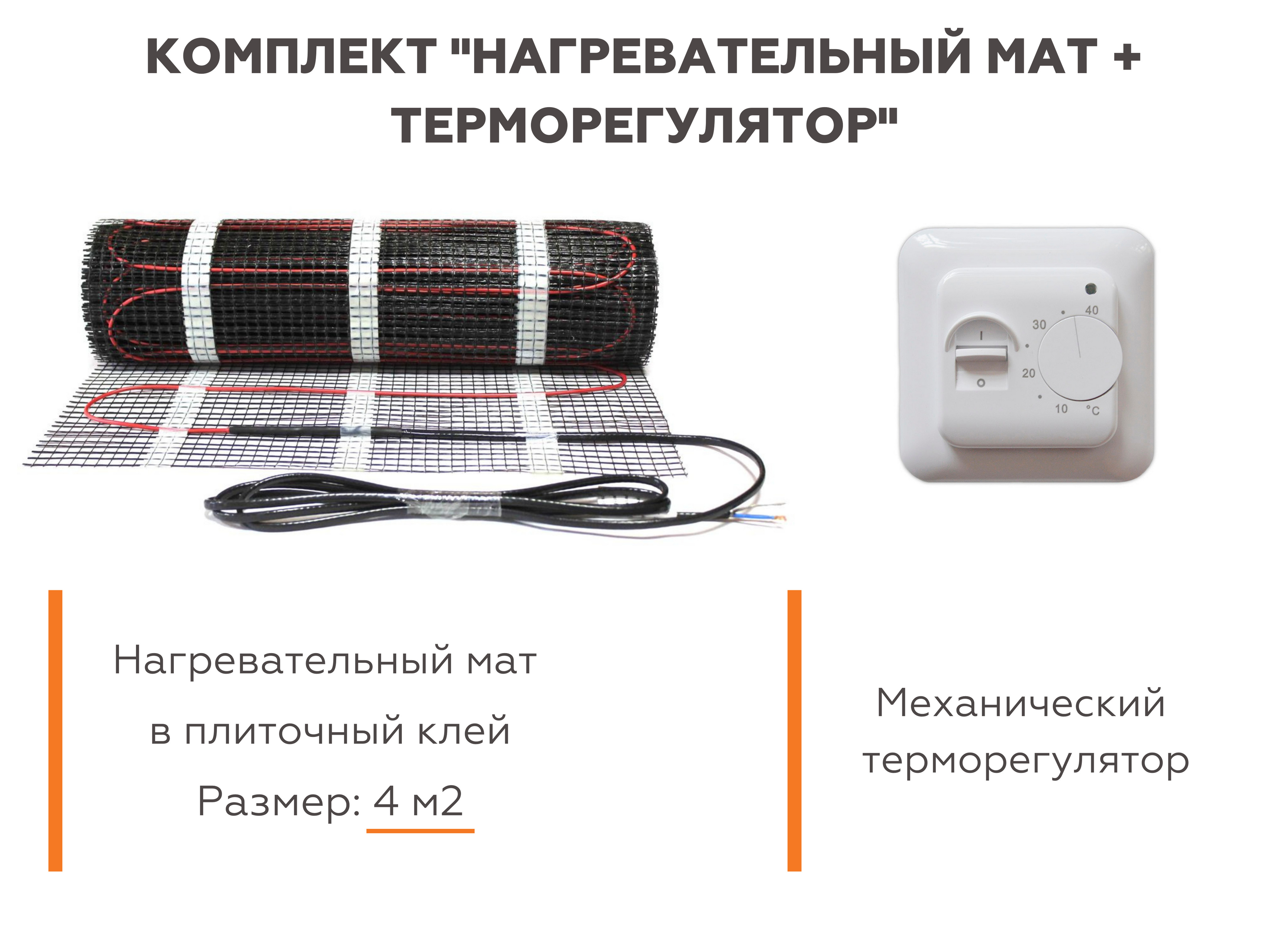 Теплый пол электрический под плитку с терморегулятором (нагревательный мат) 4м2