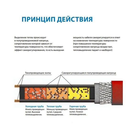 Саморегулирующийся греющий кабель на трубу 16 Вт/м (15 метров )