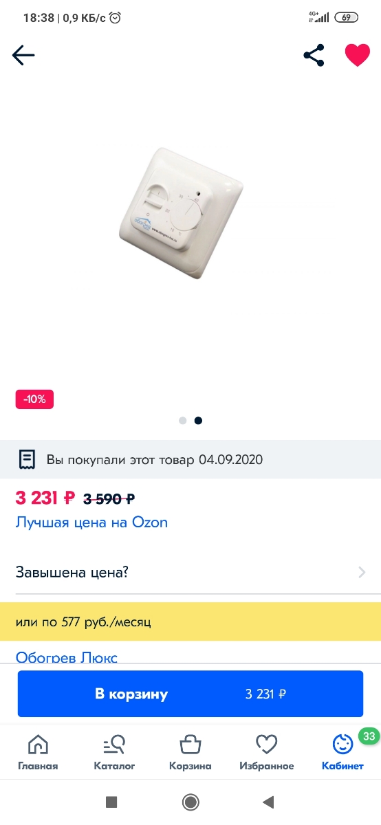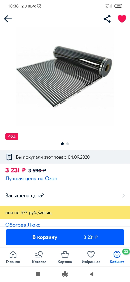 Теплый пол Family 4,5м2/675Вт в комплекте с терморегулятором