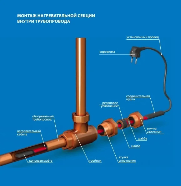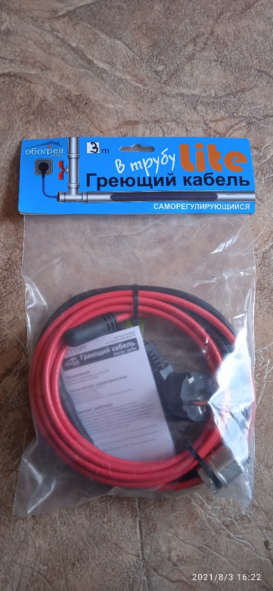 Греющий кабель Обогрев Люкс в трубу, 3м 45Вт