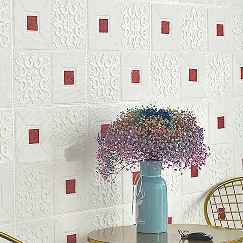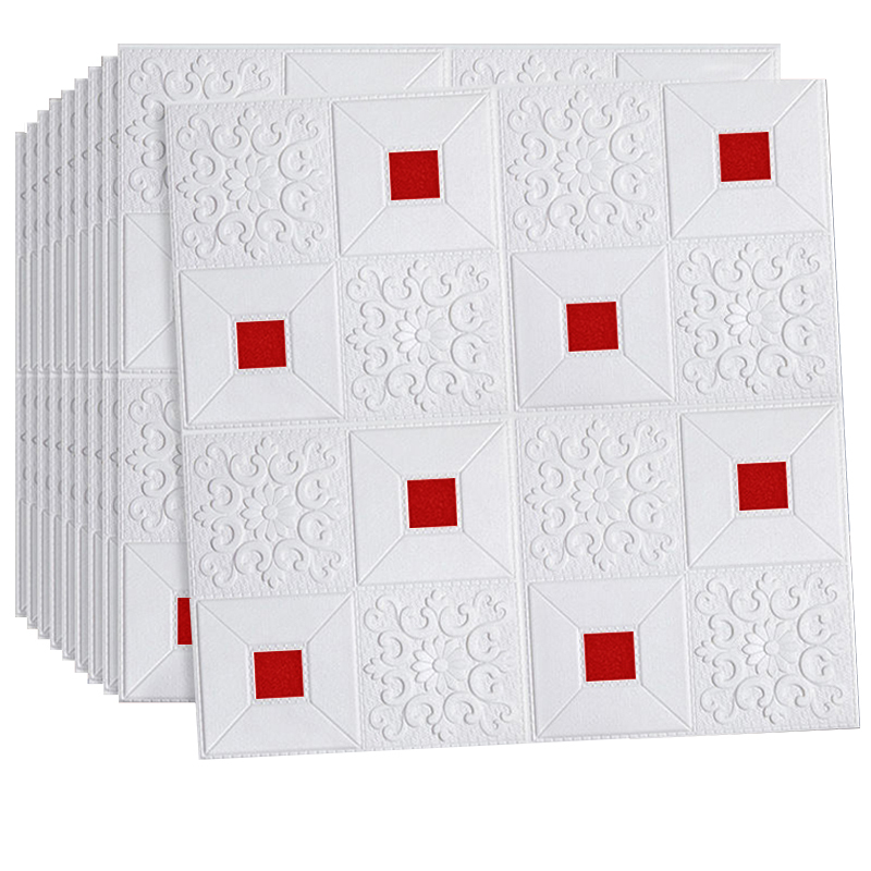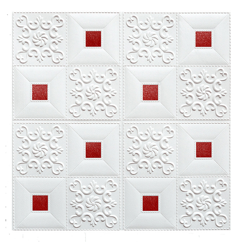 Панели (комплект 10 шт) самоклеющиеся для стен декоративные,3D,мягкие 70х70 см,толщина 5 мм, красный