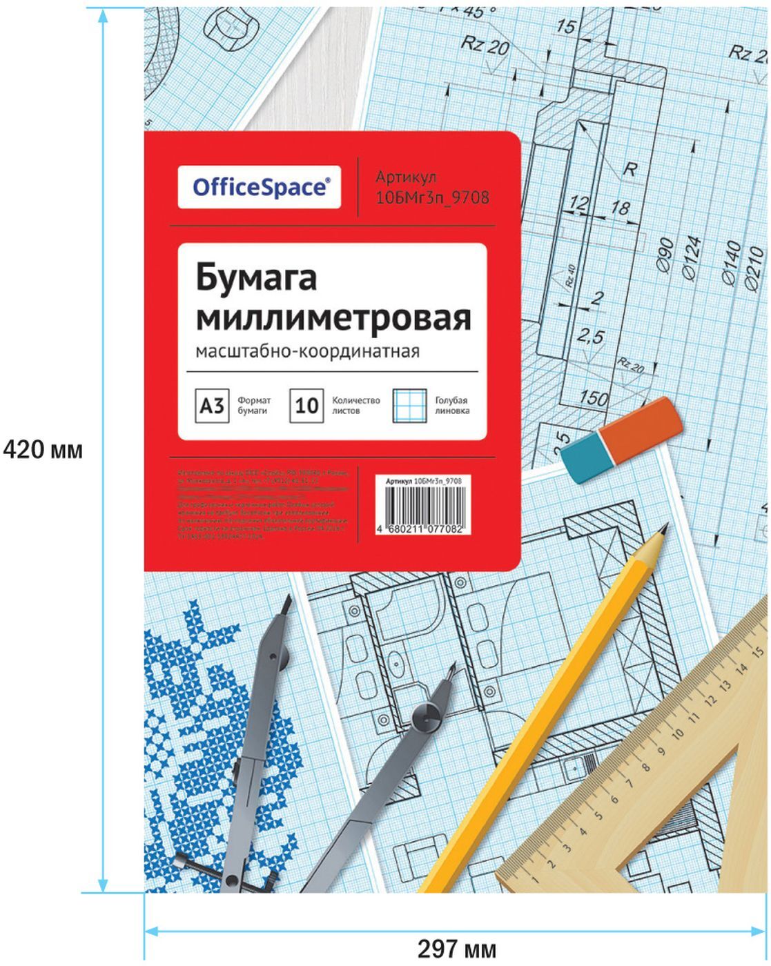 Бумага для черчения OfficeSpace, масштабно-координатная, в папке, 232959, голубой, 10 листов х 40 шт