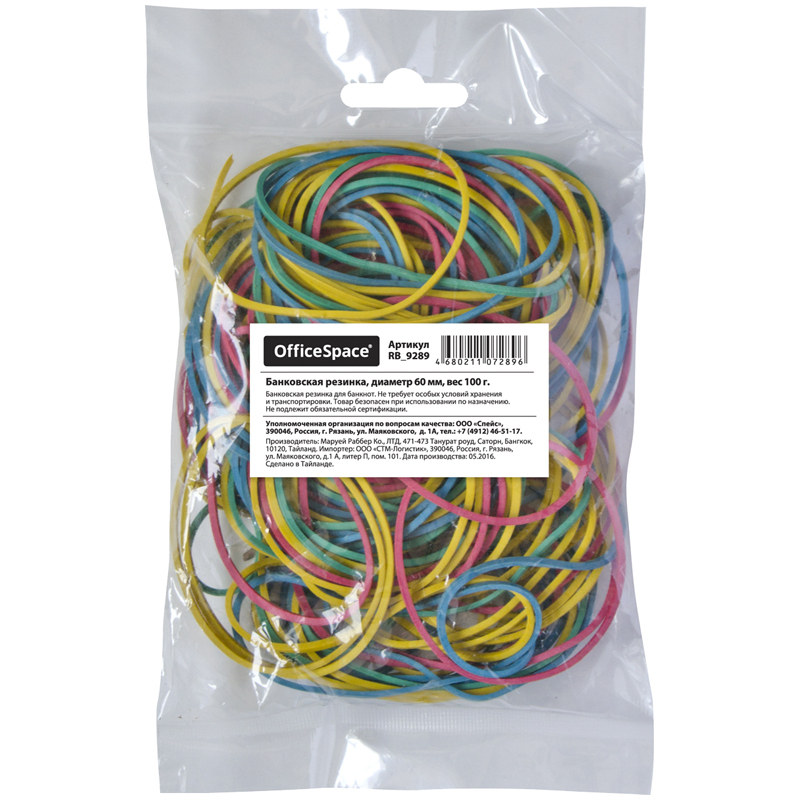 Резинки банковские универсальные диаметром 60 мм, 100 г, цветные, натуральный каучук, OfficeSpace