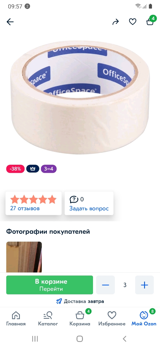 Клейкая лента малярная OfficeSpace, 38 мм х 25 м