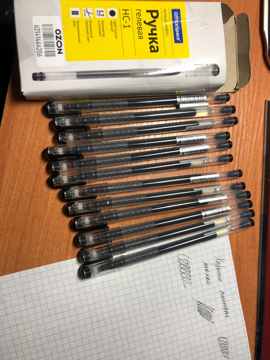 Ручка гелевая OfficeSpace HC-1 черная 0,4 мм, бесстержневая, 12 шт