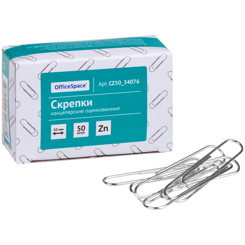 Скрепки 50мм, OfficeSpace, 50шт., оцинкованные, карт. упак., 10уп