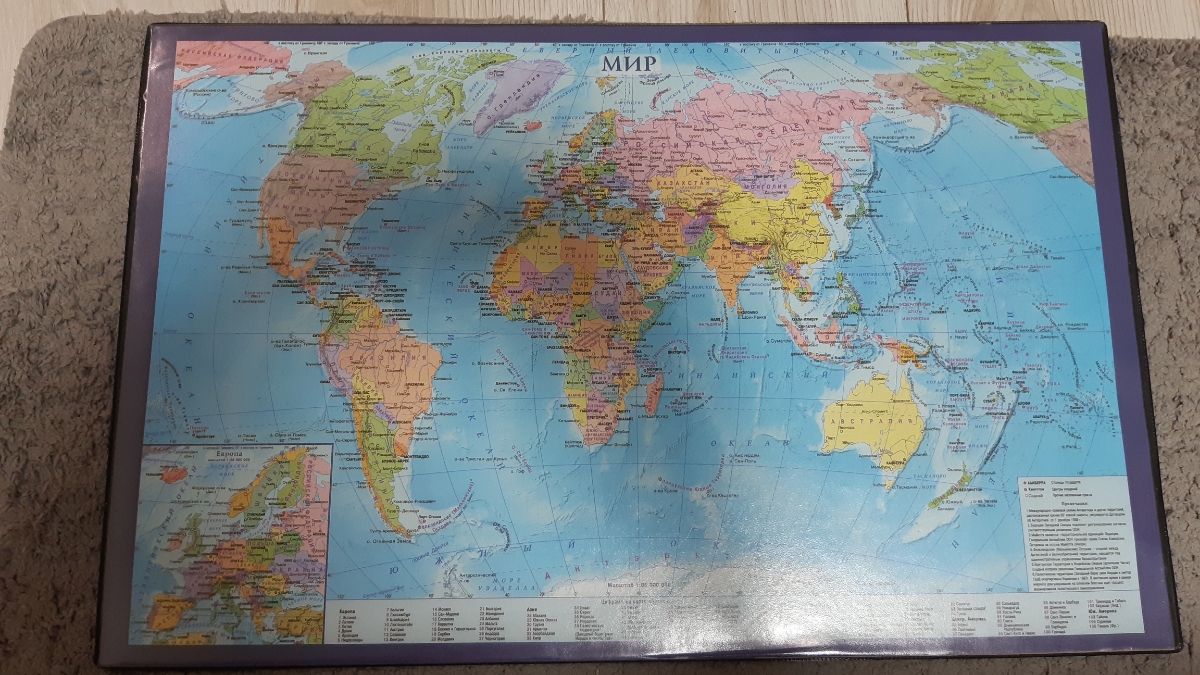Настольное покрытие OfficeSpace Карта мира, 194915, разноцветный, 38 х 59 см