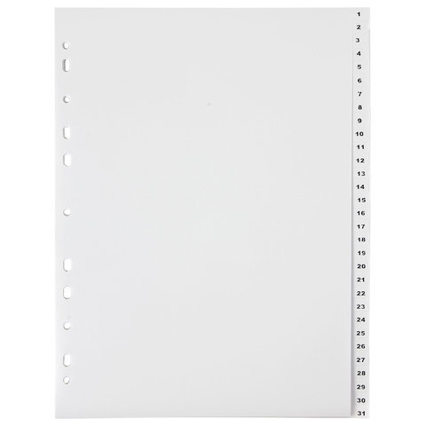 Разделитель пластиковый ОФИСМАГ, А4, 31 лист, цифровой 1-31, оглавление, серый, РОССИЯ, 225605
