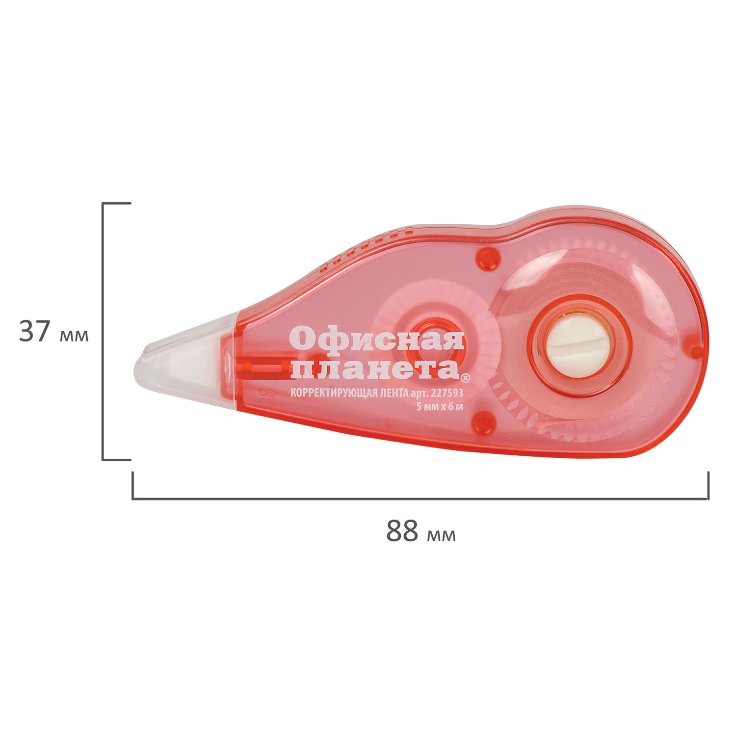 Корректирующая лента ОФИСНАЯ ПЛАНЕТА 5 мм х 6 м, корпус красный, с подкручиванием, блистер, 227593