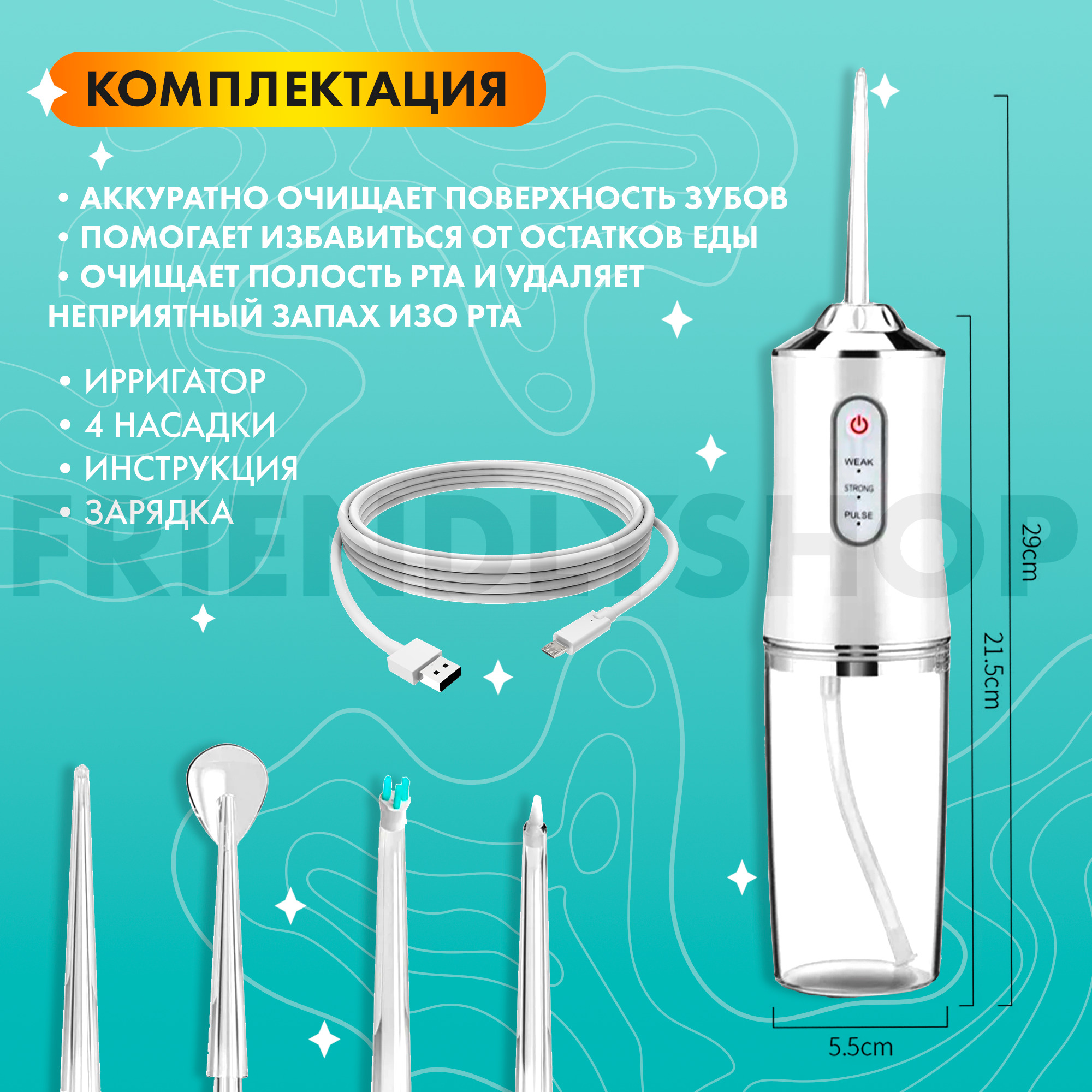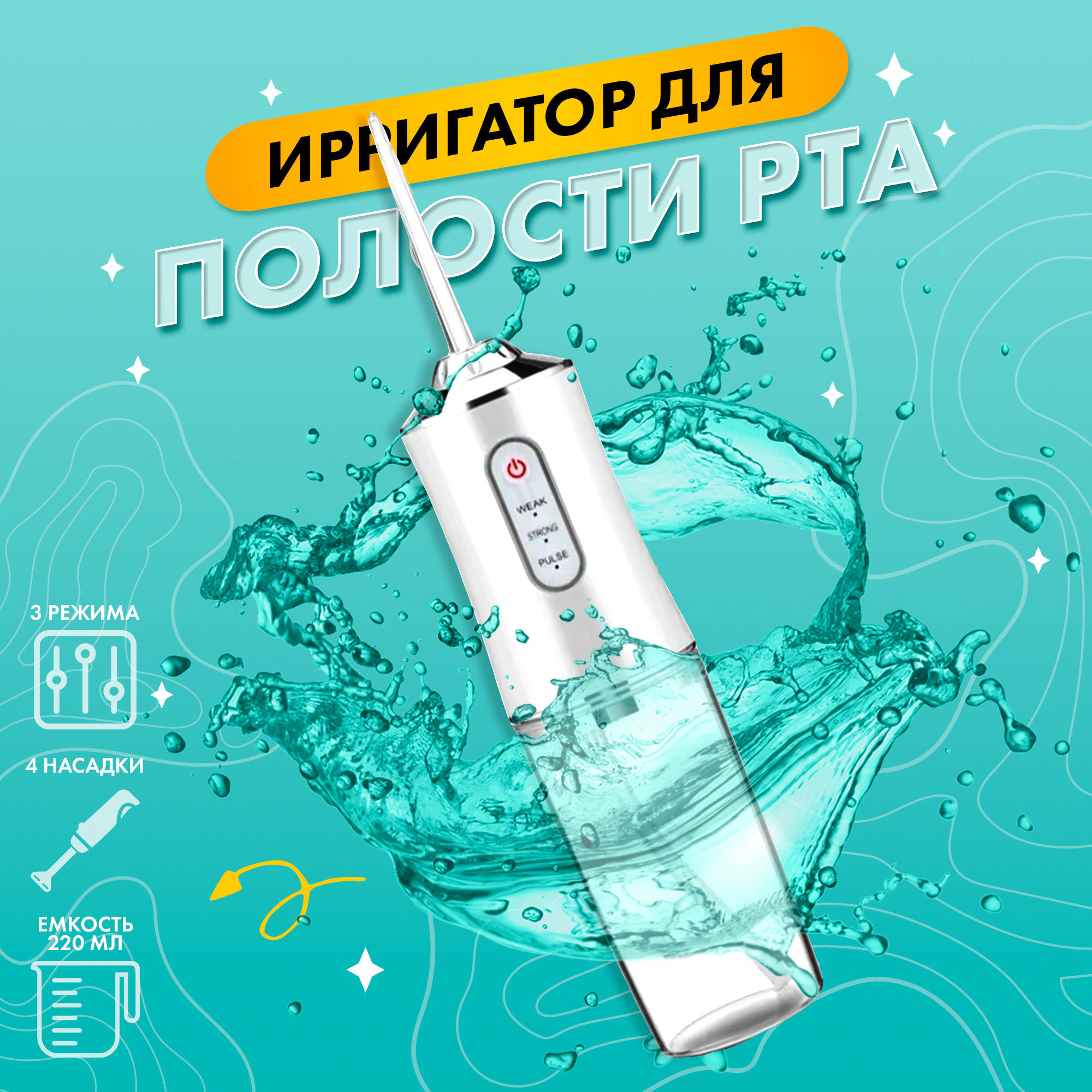 Ирригатор для полости рта, Oil, портативный ирригатор для брекетов, зубов, десен и полости рта. Белый