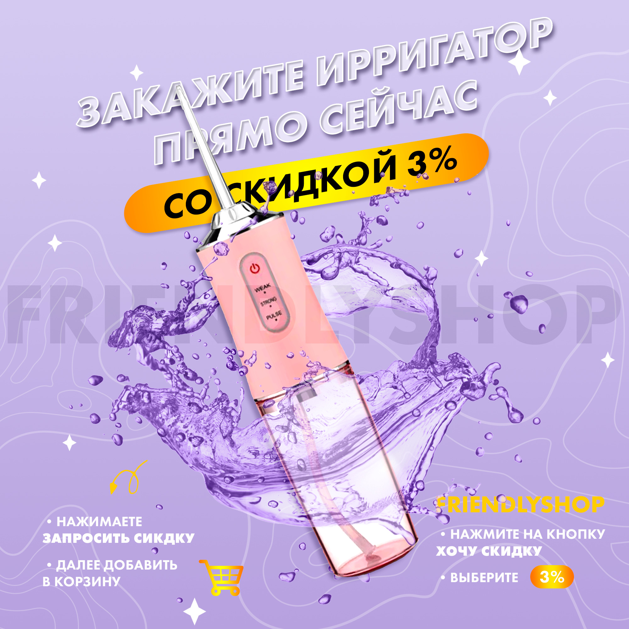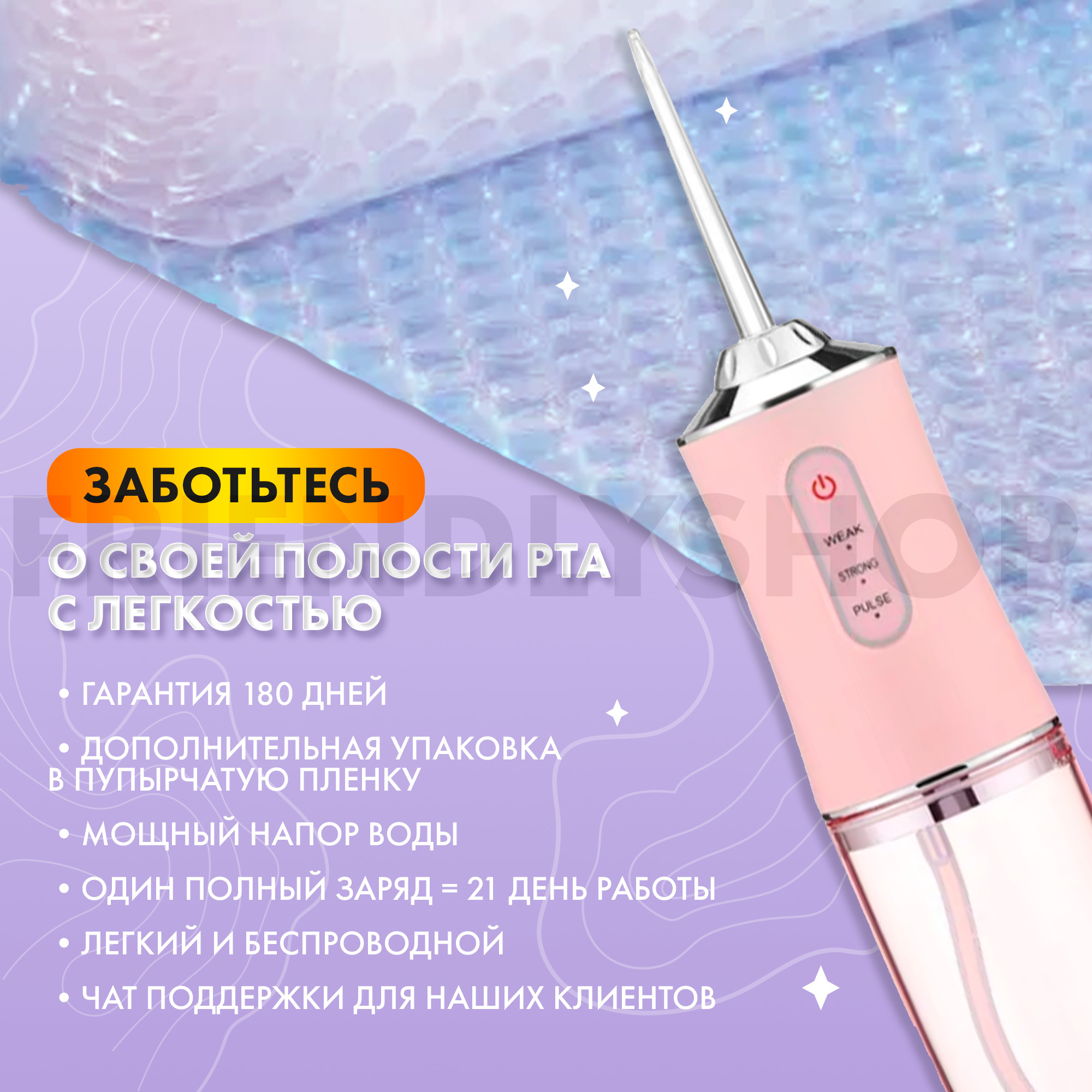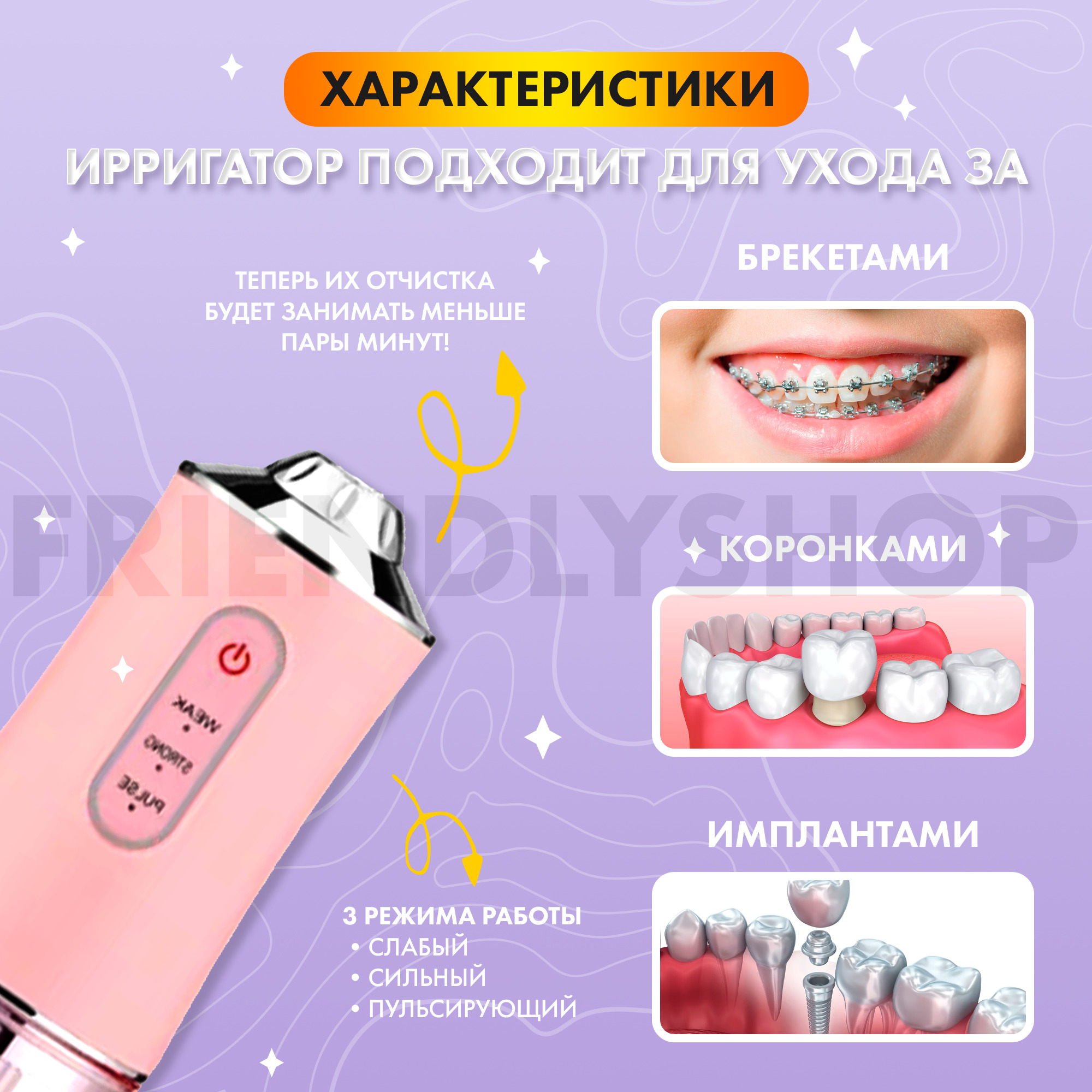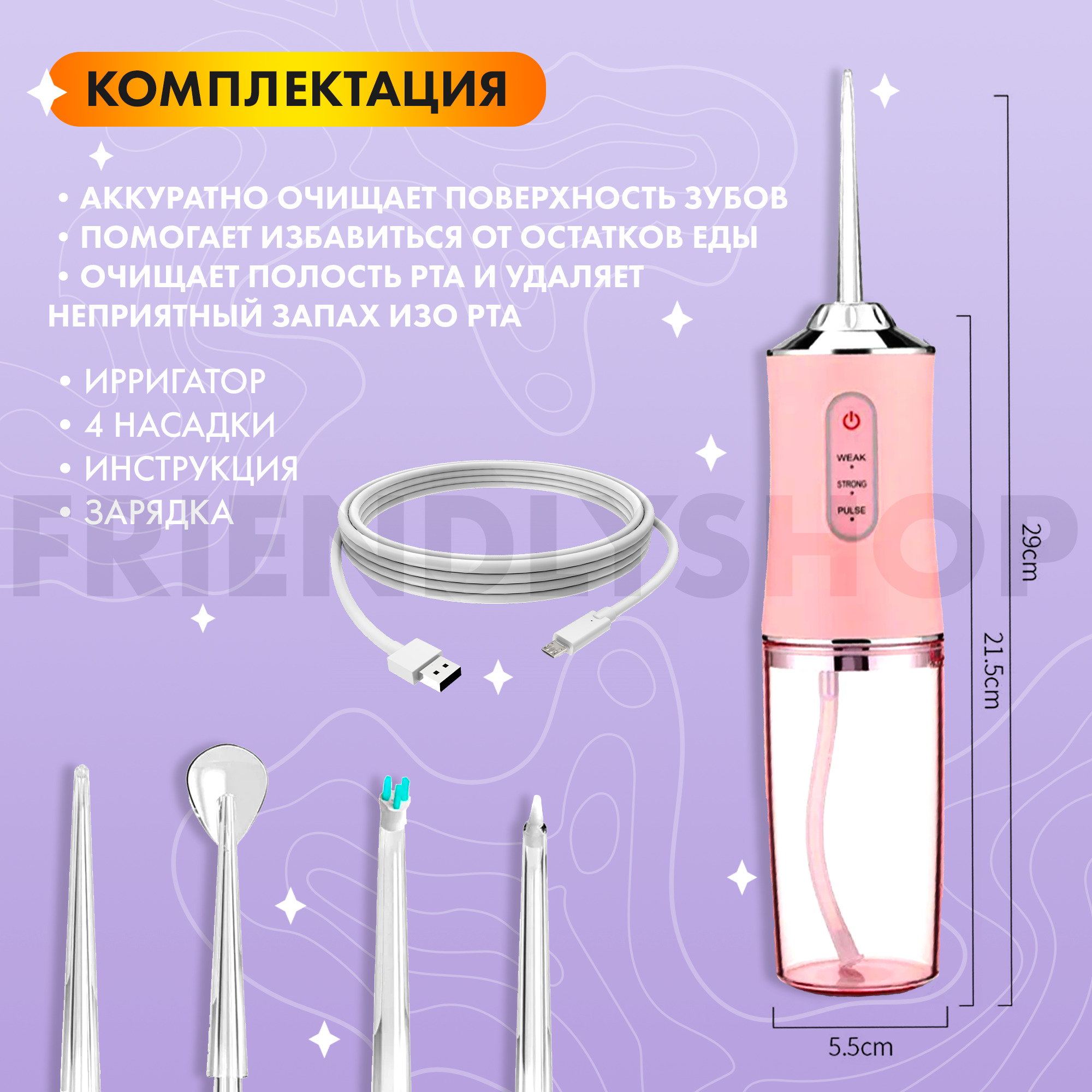 Ирригатор для полости рта, Oil, портативный ирригатор для брекетов, зубов, десен и полости рта. Розовый