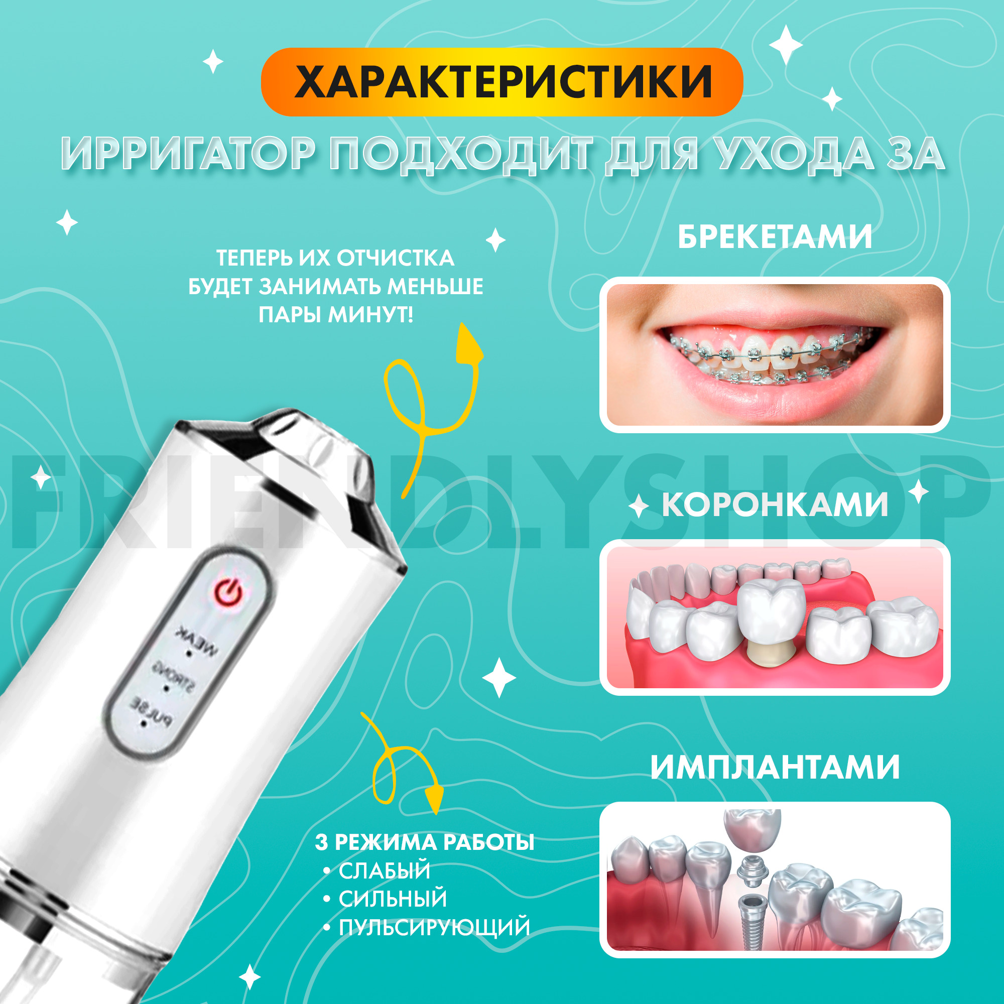 Ирригатор для полости рта, Oil, портативный ирригатор для брекетов, зубов, десен и полости рта.