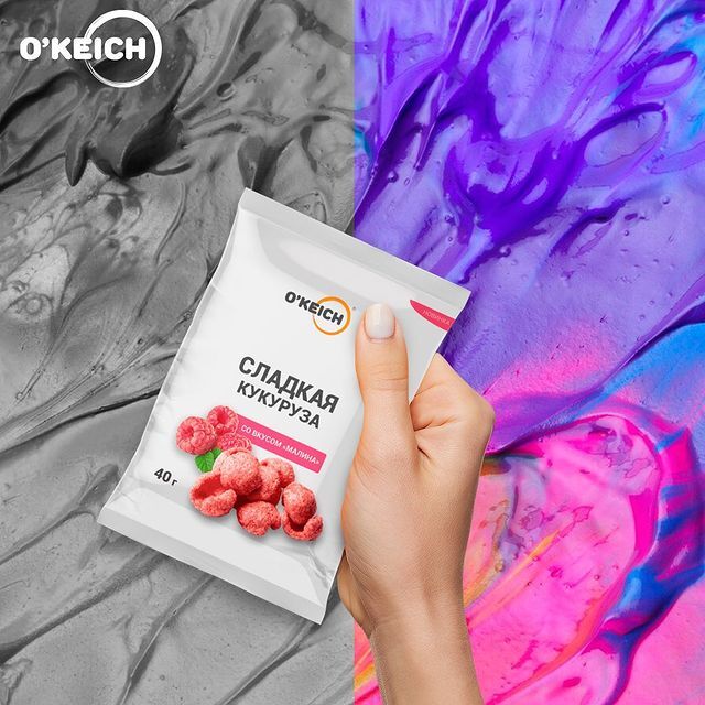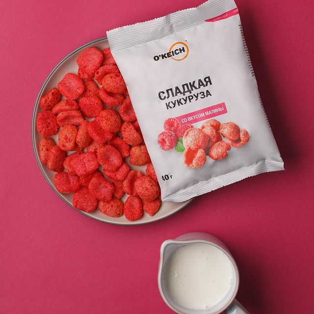 Кукурузные чипсы O'KEICH со вкусом малины, 3 шт х 40 г