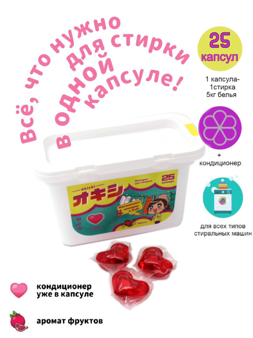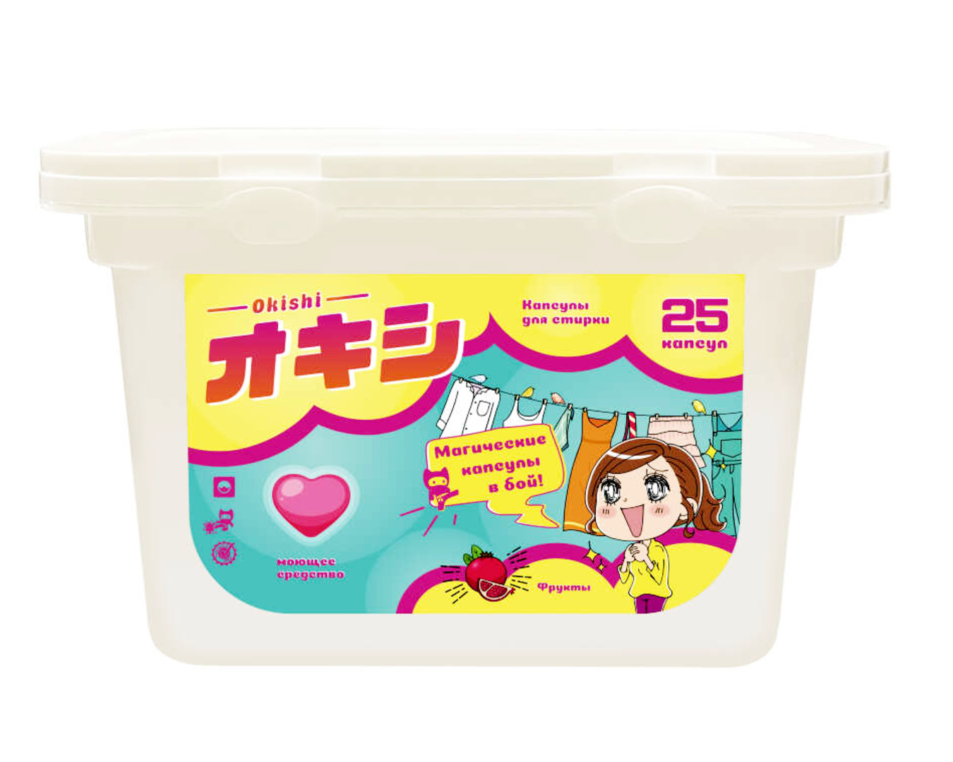 Капсулы для стирки Okishi с ароматом фруктов 25 капсул