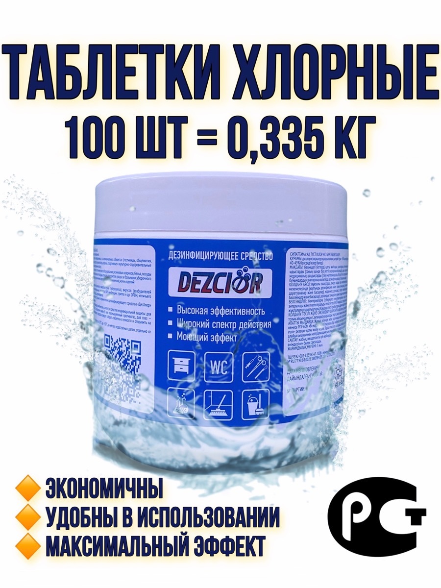 Дезинфицирующее средство, ДезХлор, (банка по 100 таблеток - вес 0,335 кг.)