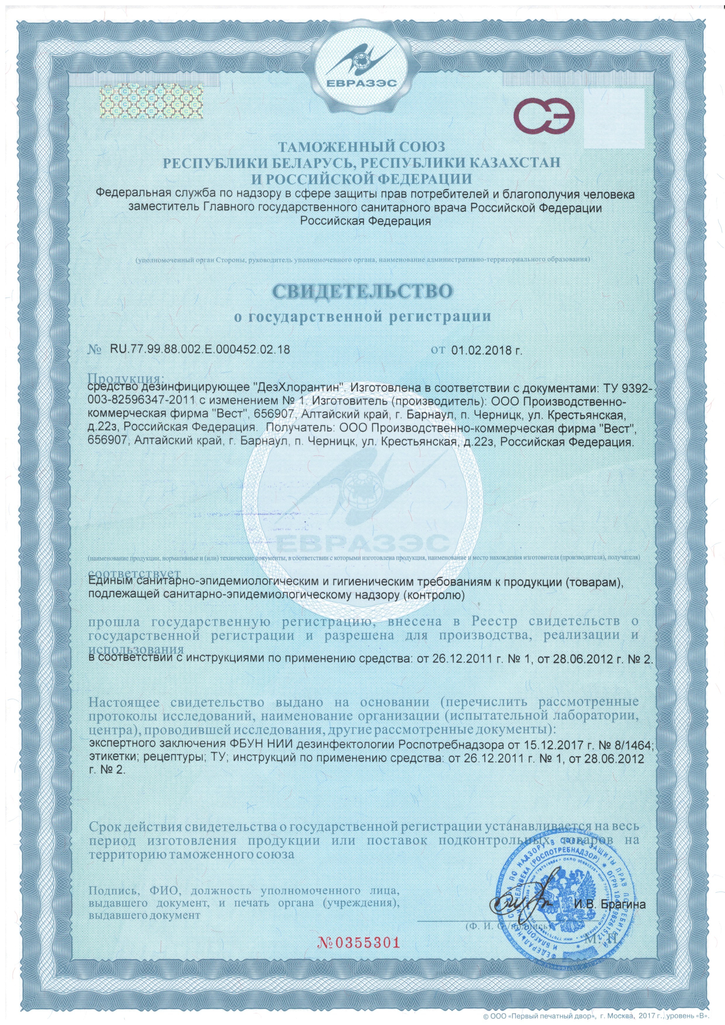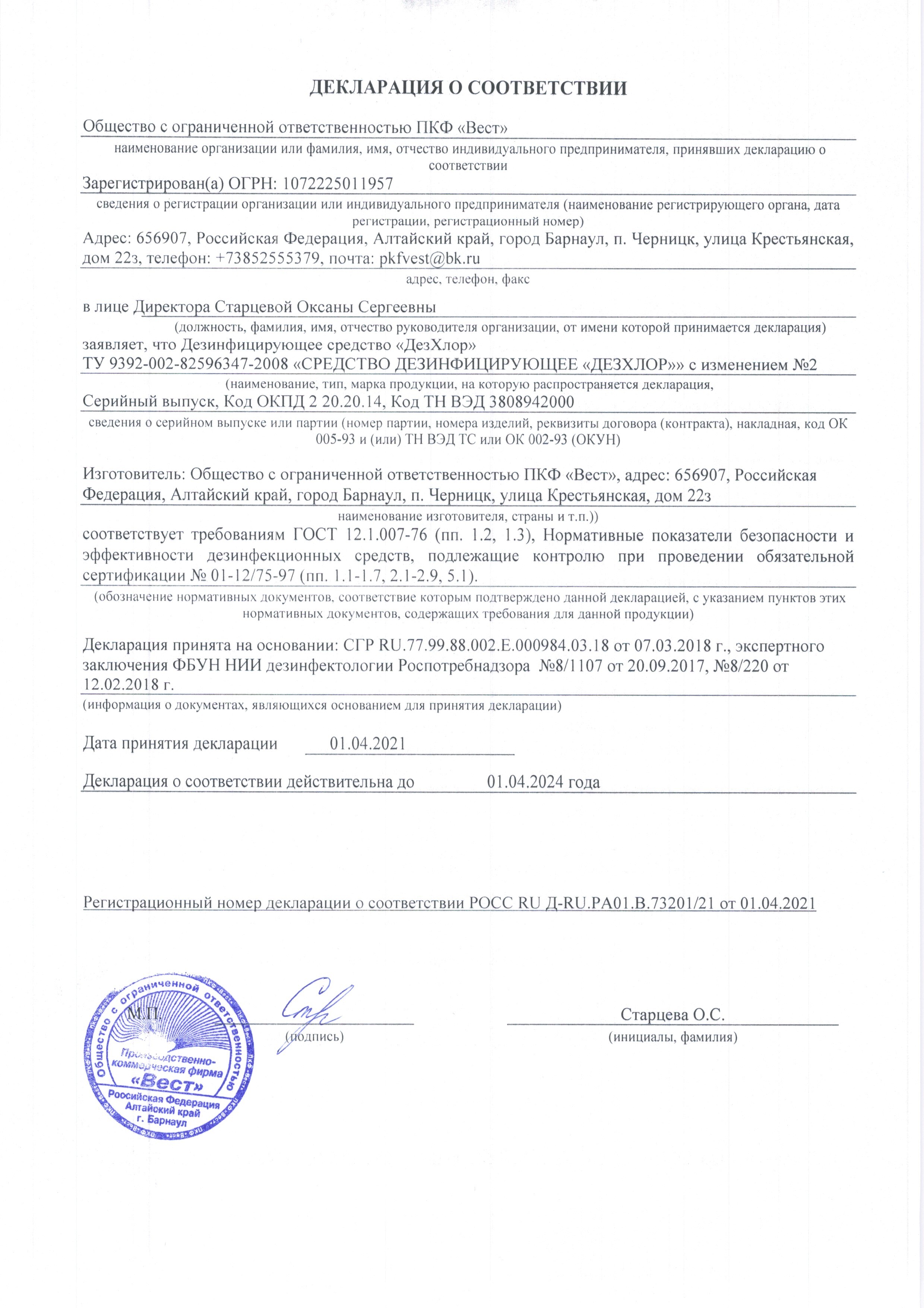 ДезХлорантин - дезинфицирующее средство (порошок 0,8 кг)