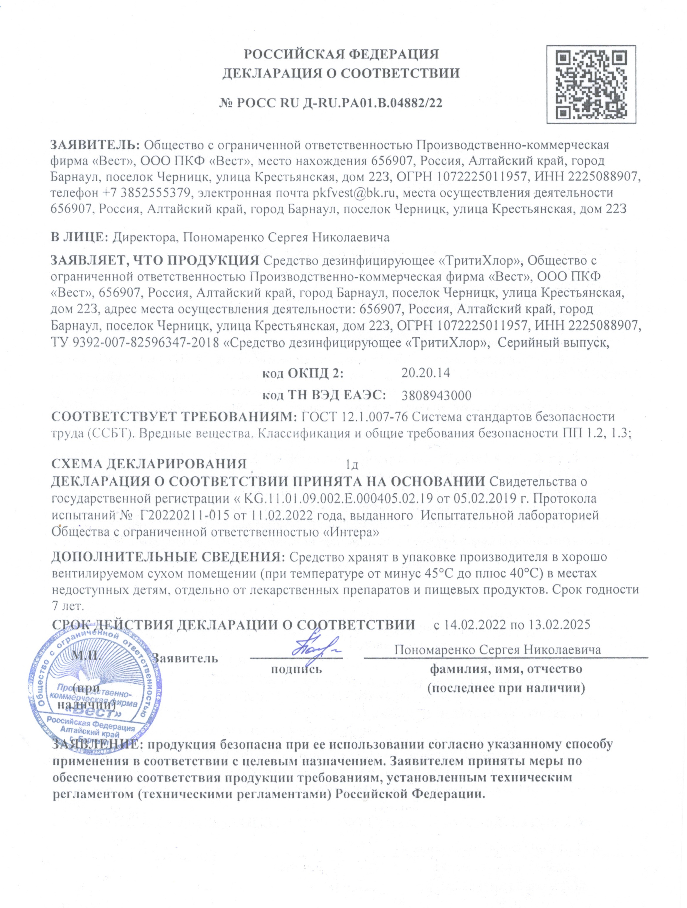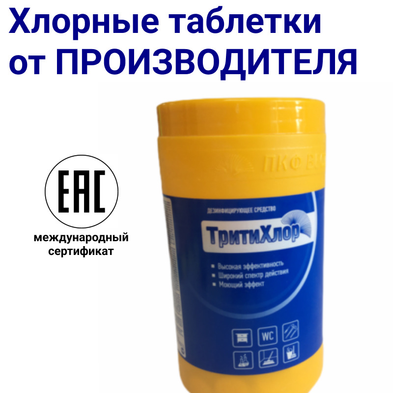 Дезинфицирующее средство "ТритиХлор" 6% (банка 300 таблеток - вес 1 кг.)