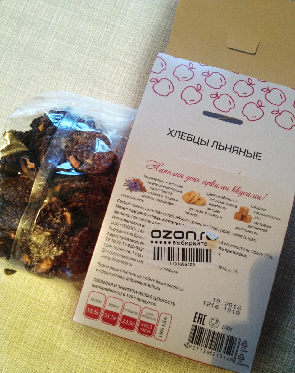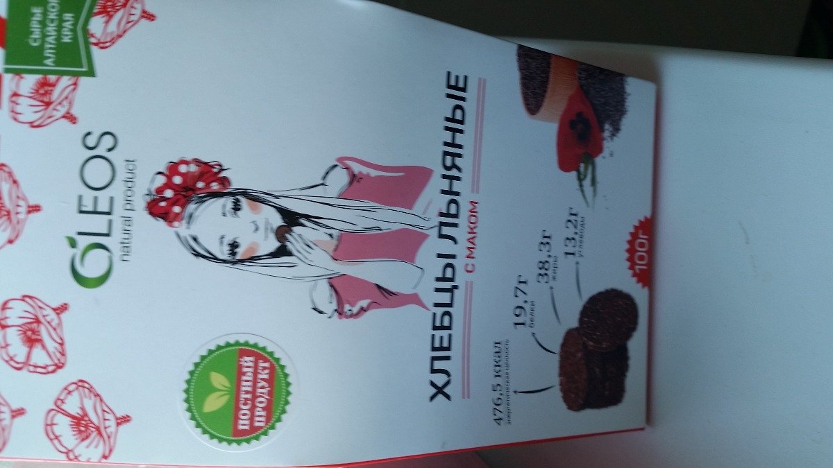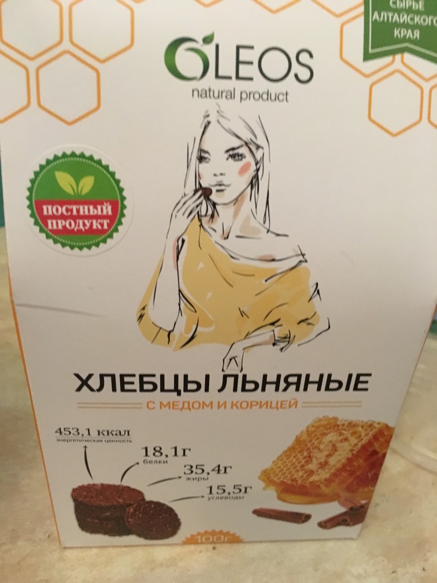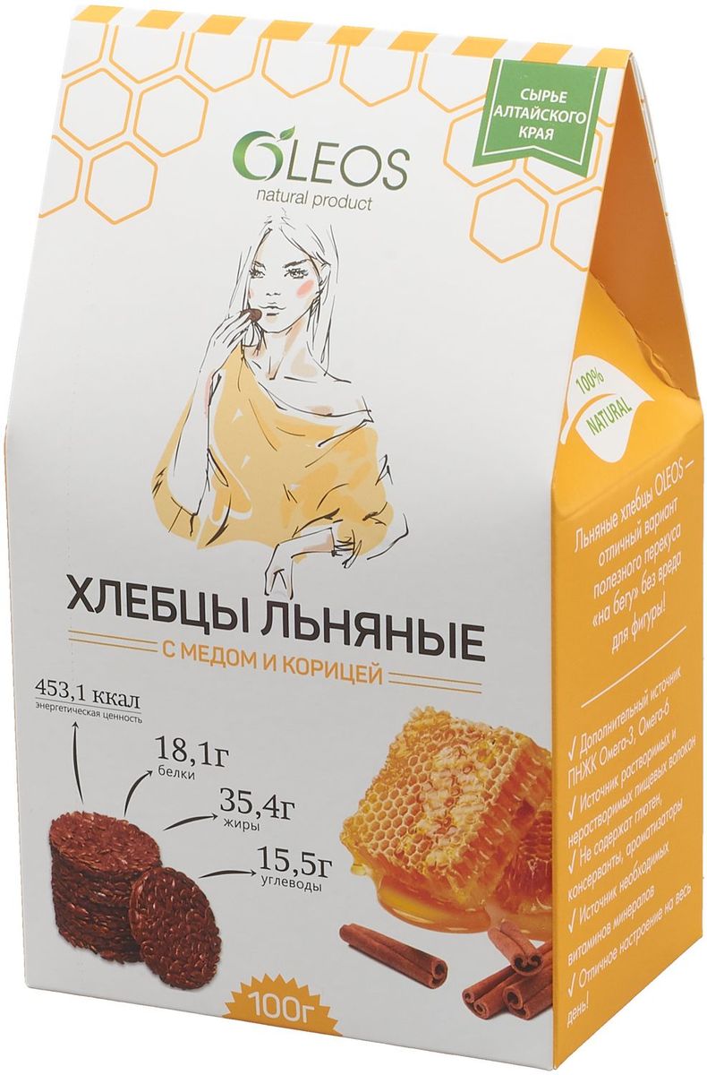 Oleos хлебцы льняные с медом и корицей, 100 г