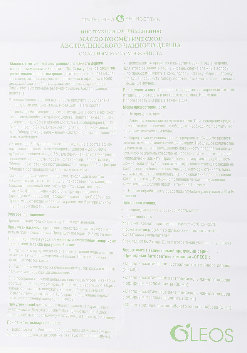Олеос масло эфирное австралийского чайного дерева 5мл