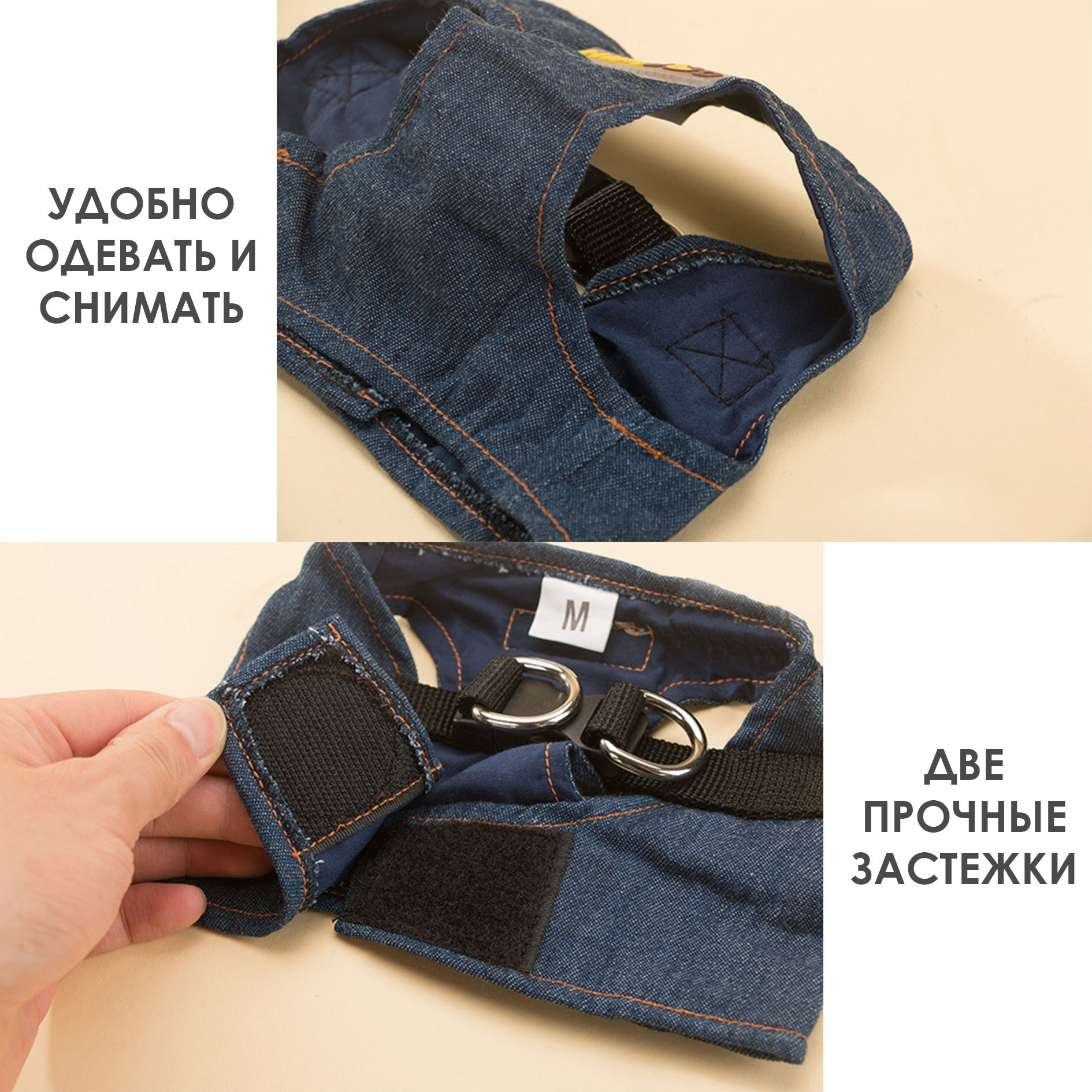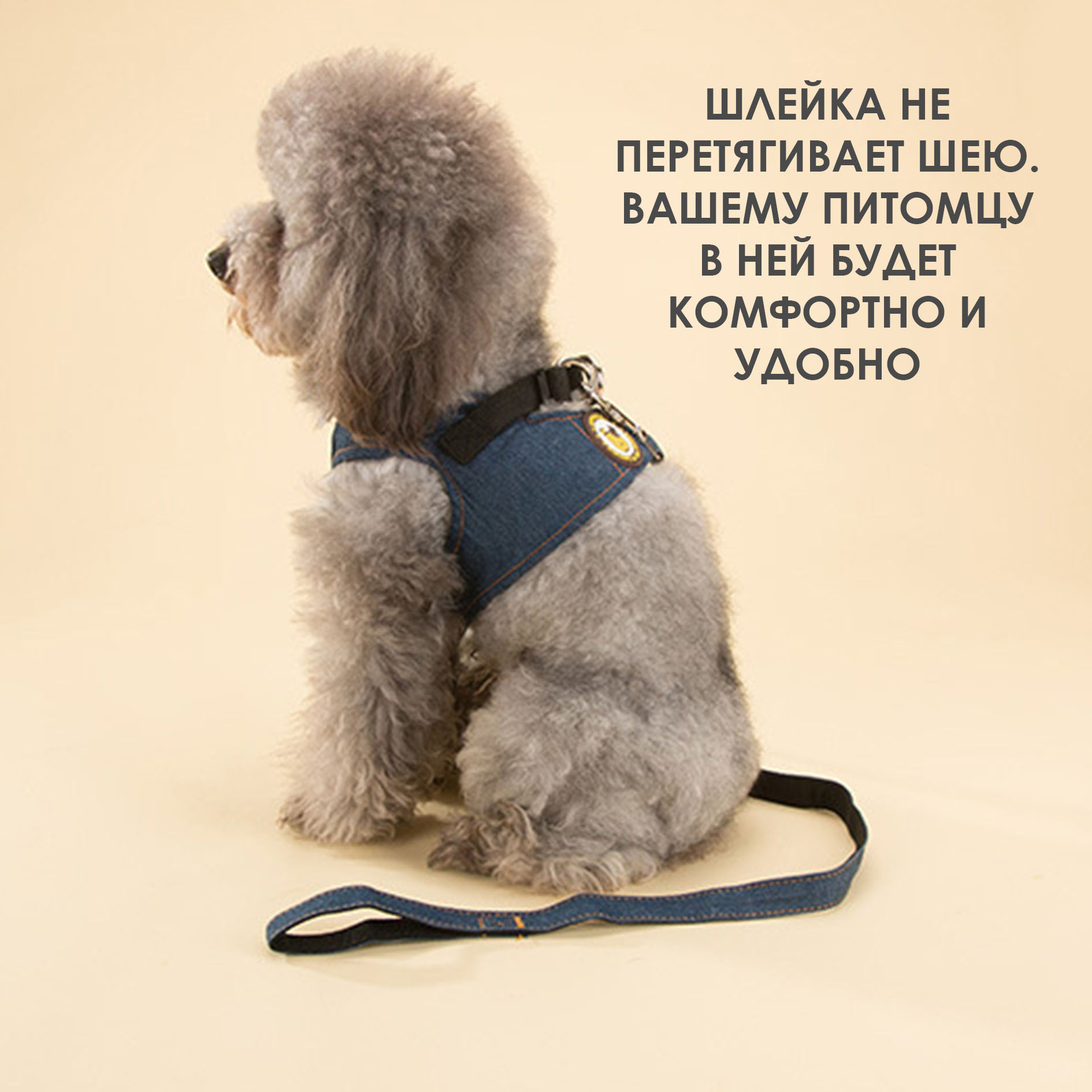 Шлейка для собак мелких и средних пород с поводком, Шлейка для собаки джинсовая размер M