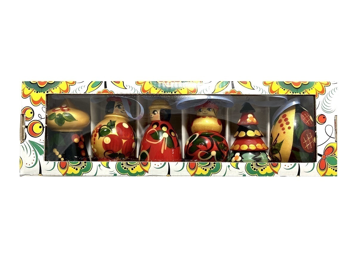 Набор елочных игрушек из дерева 6 шт "Зимняя деревня" ручная работа, высота фигурок 50 мм