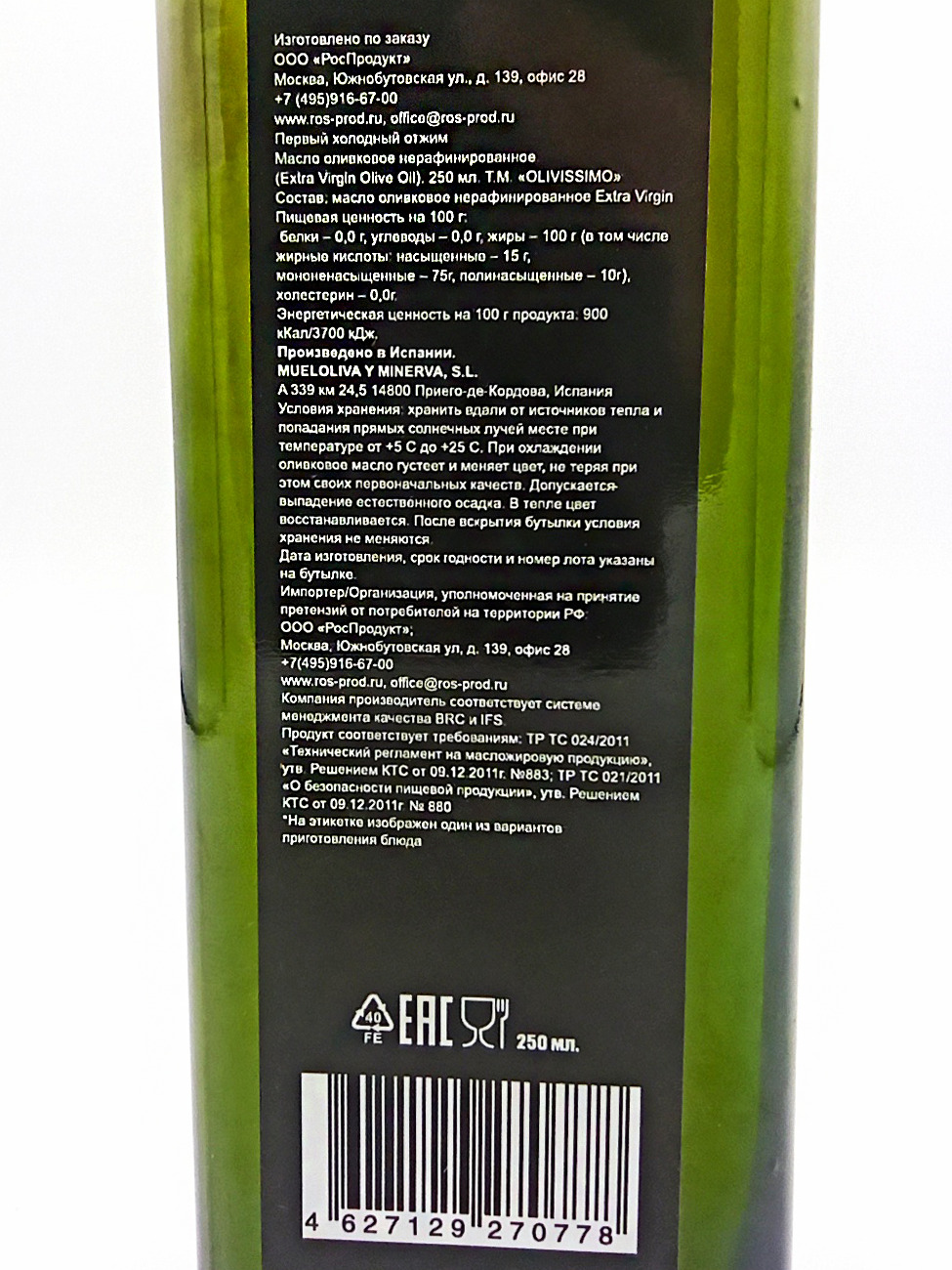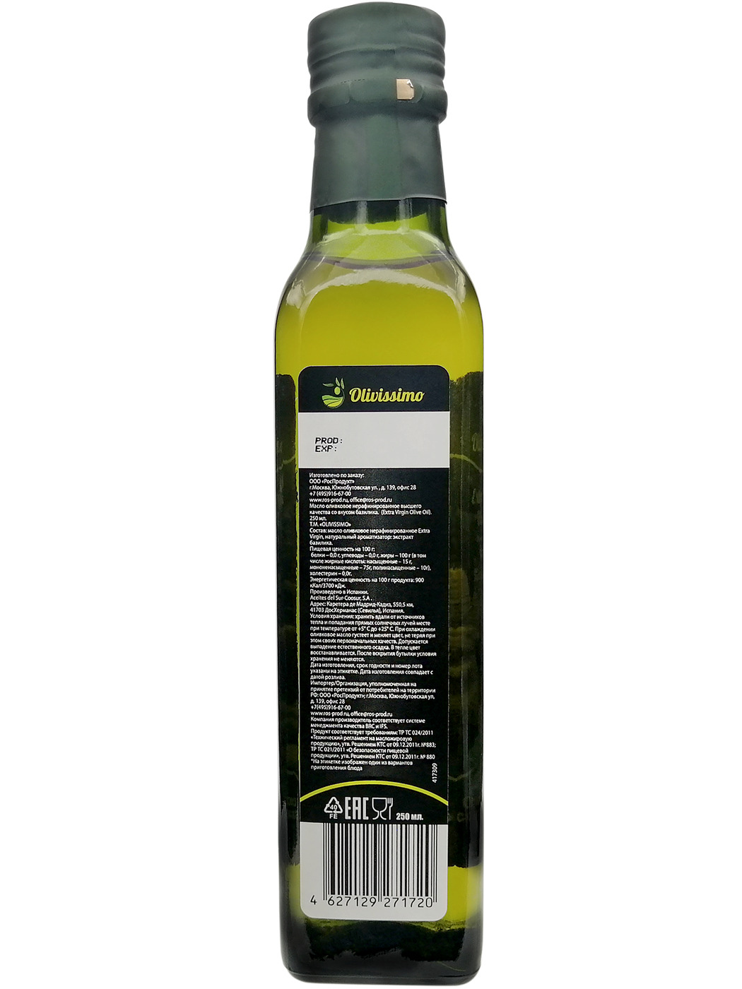 Масло оливковое Olivissimo Extra Virgin нерафинированное первого холодного отжима, 250 мл