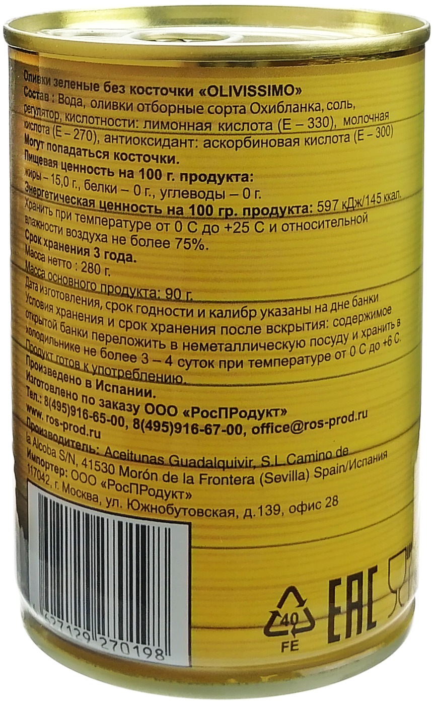 Оливки Olivissimo зеленые без косточек, 280 г - 4 шт
