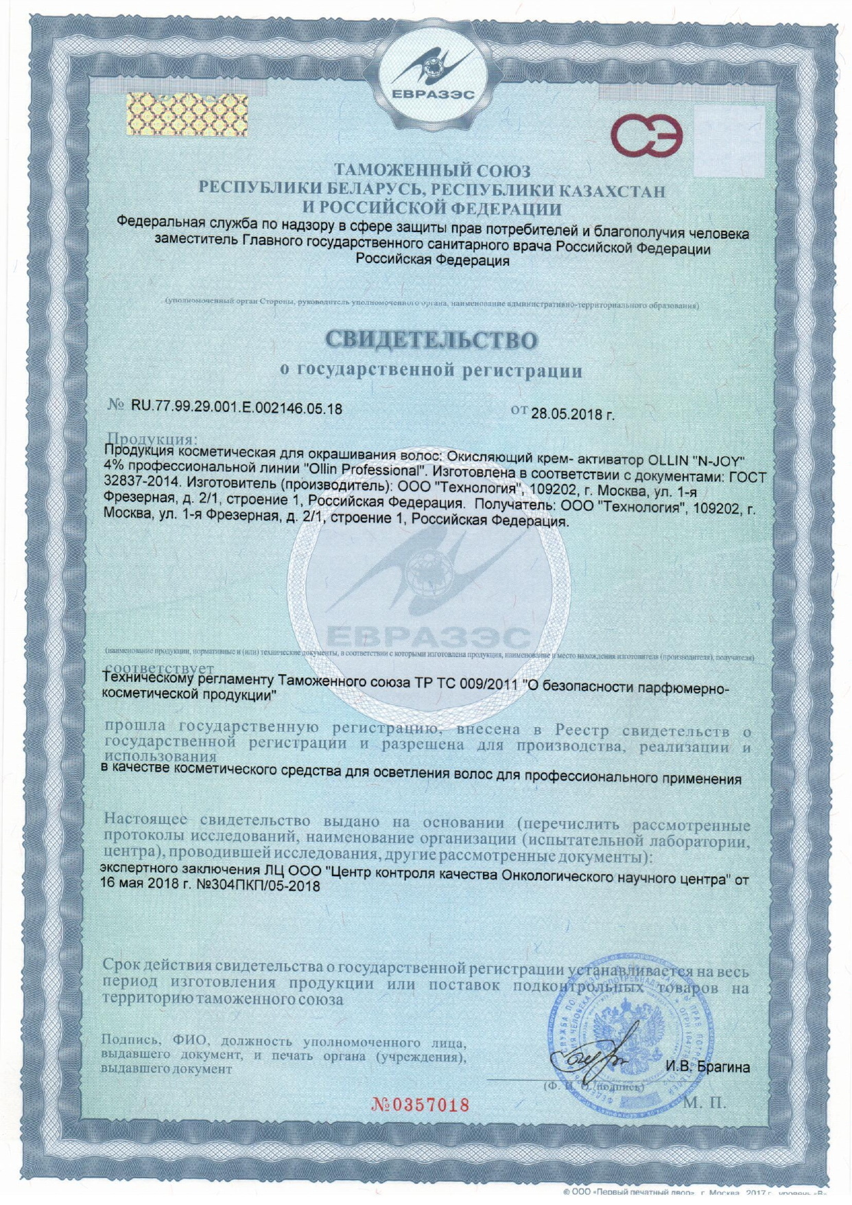 OLLIN PROFESSIONAL Крем-активатор N-JOY 4 % 1000 мл