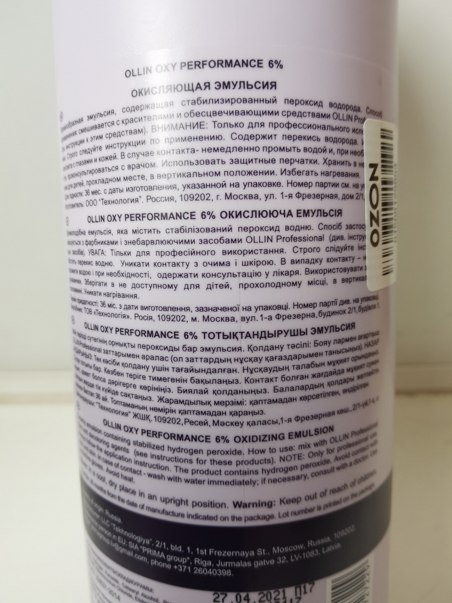 OLLIN PROFESSIONAL Эмульсия OXY PERFORMANCE 6 % 1000 мл