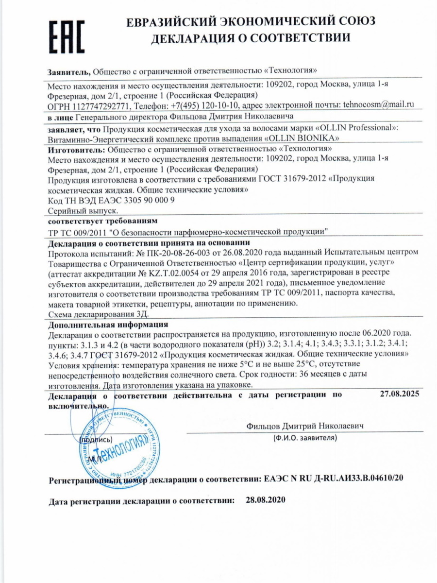 OLLIN PROFESSIONAL Витаминно-энергетический комплекс BIONIKA против выпадения волос 100 мл
