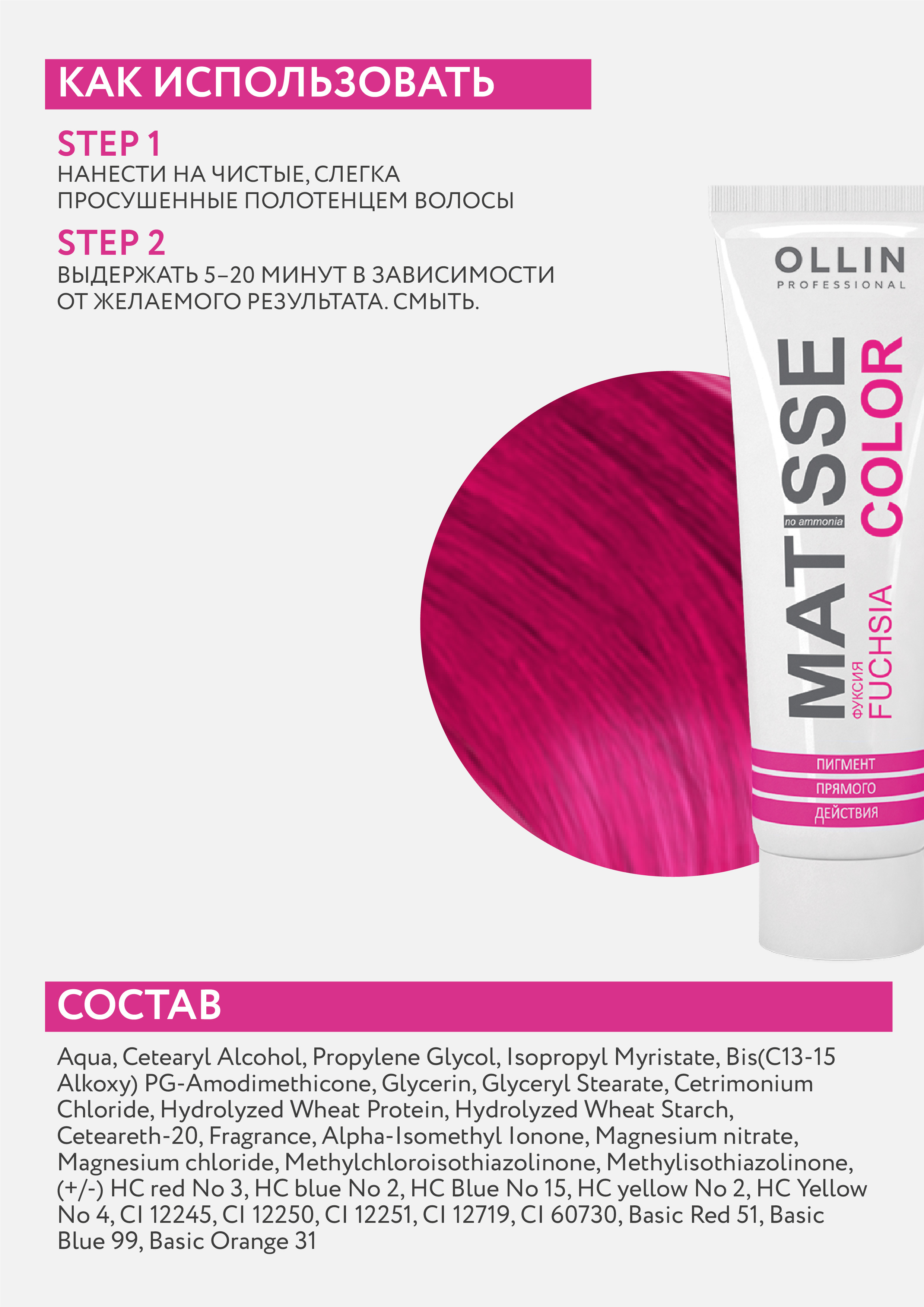 OLLIN PROFESSIONAL Пигмент MATISSE COLOR прямого действия фуксия 100 мл