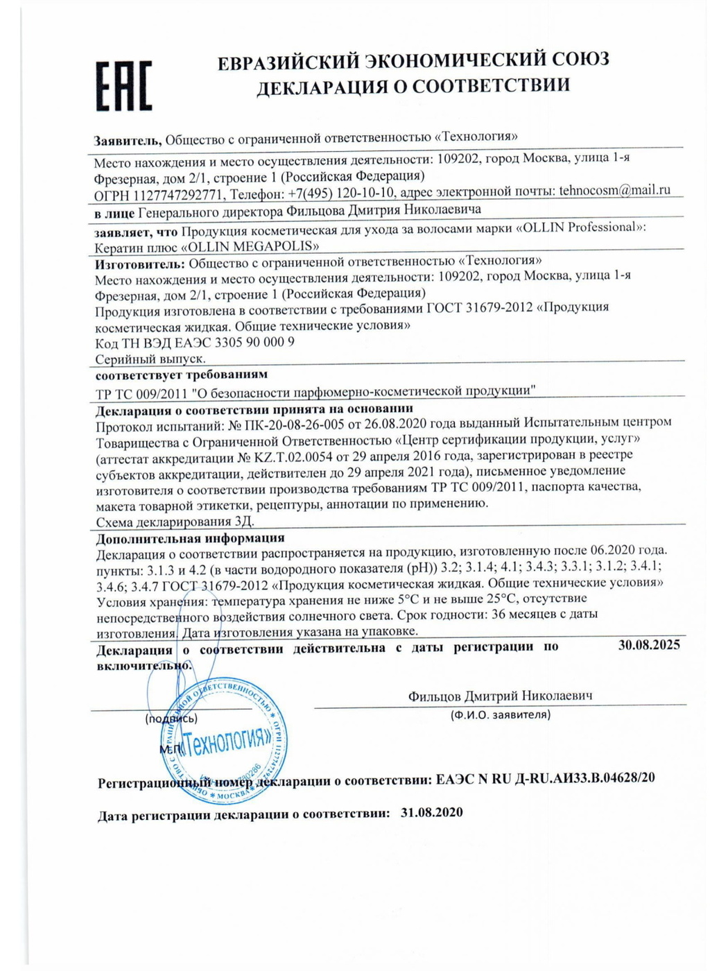 OLLIN PROFESSIONAL Спрей MEGAPOLIS для восстановления волос кератин плюс 125 мл