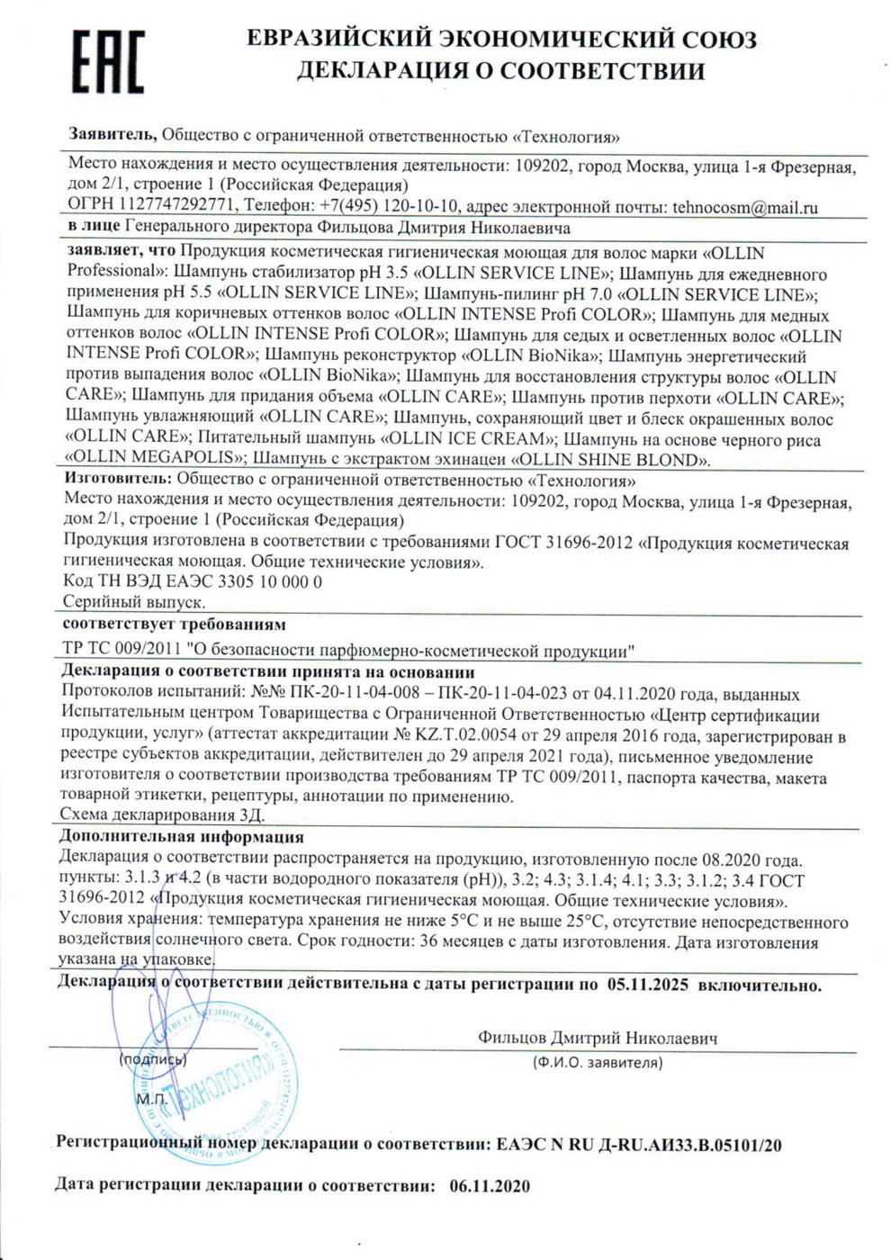 OLLIN PROFESSIONAL Шампунь SERVICE LINE для холодных оттенков блонд 1000 мл