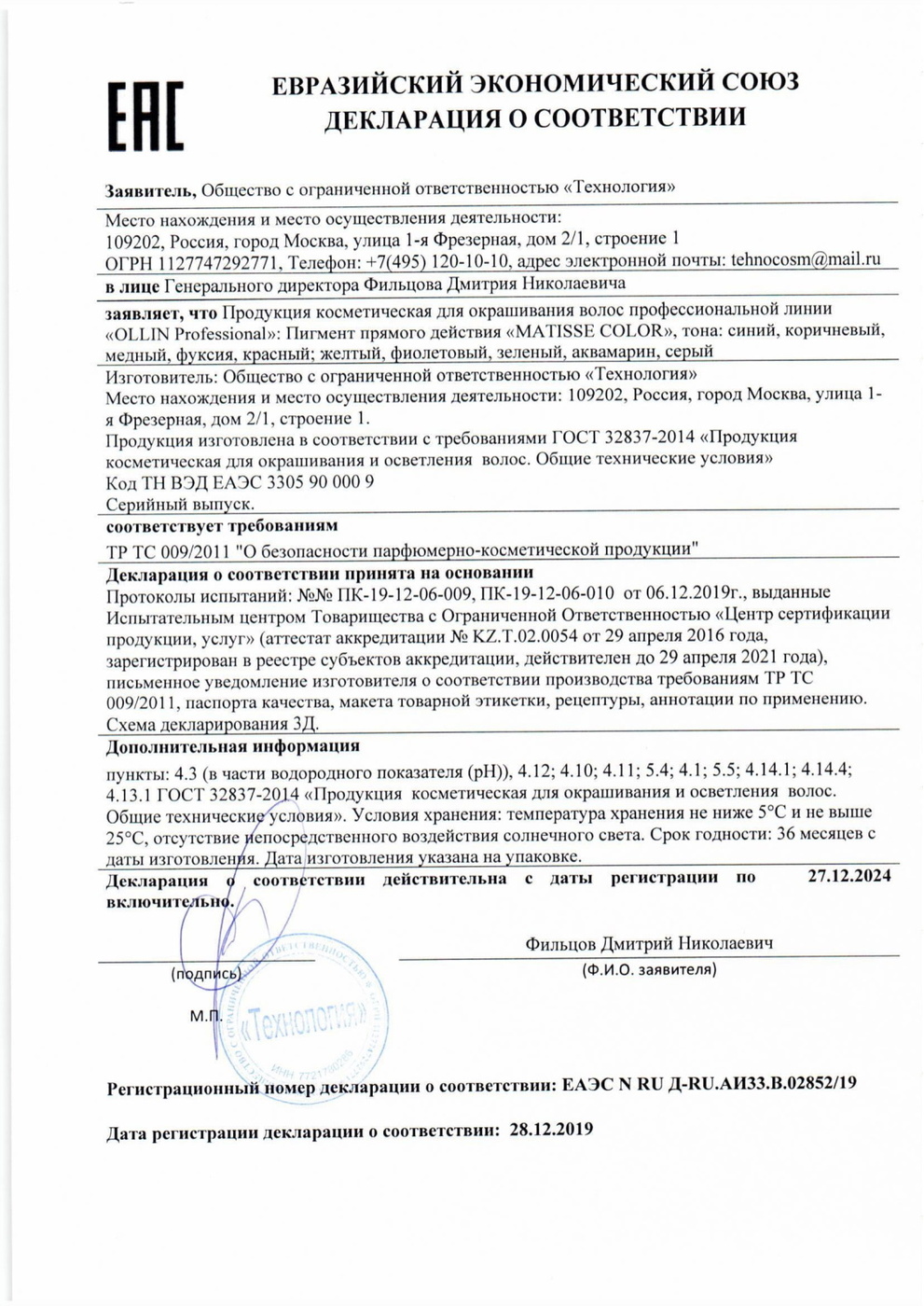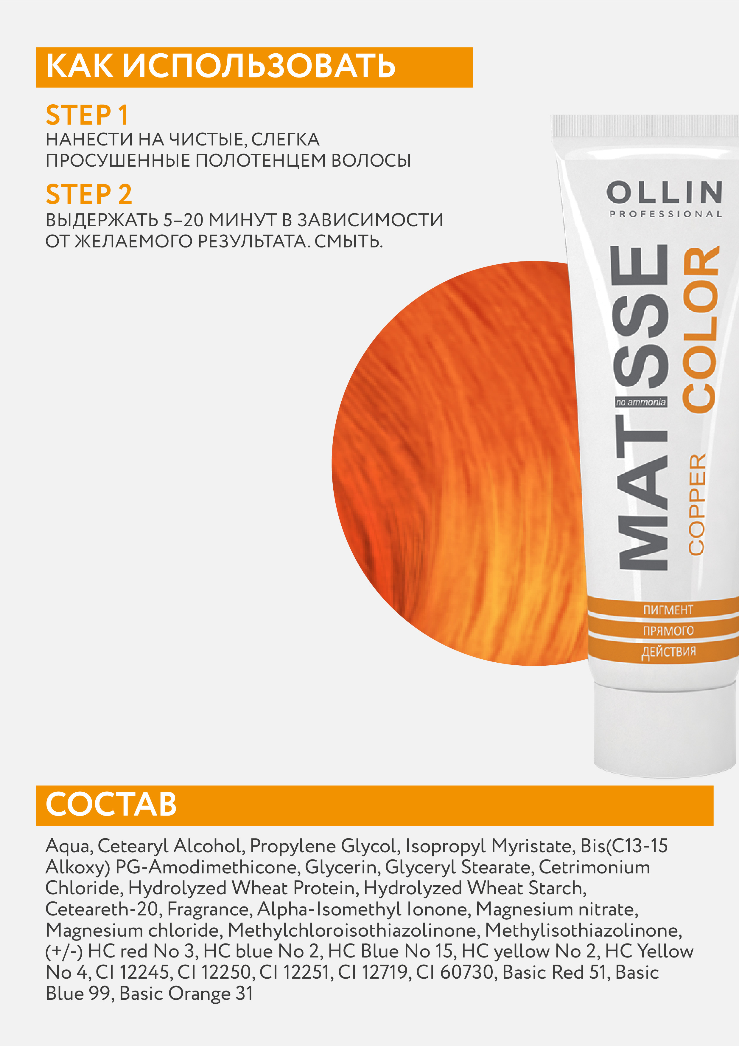 OLLIN PROFESSIONAL Пигмент MATISSE COLOR прямого действия медный 100 мл
