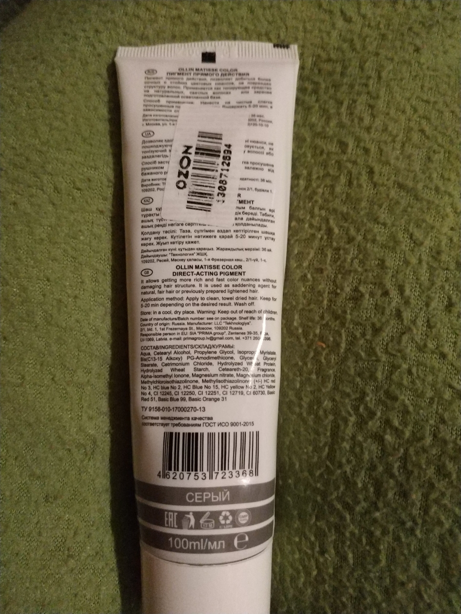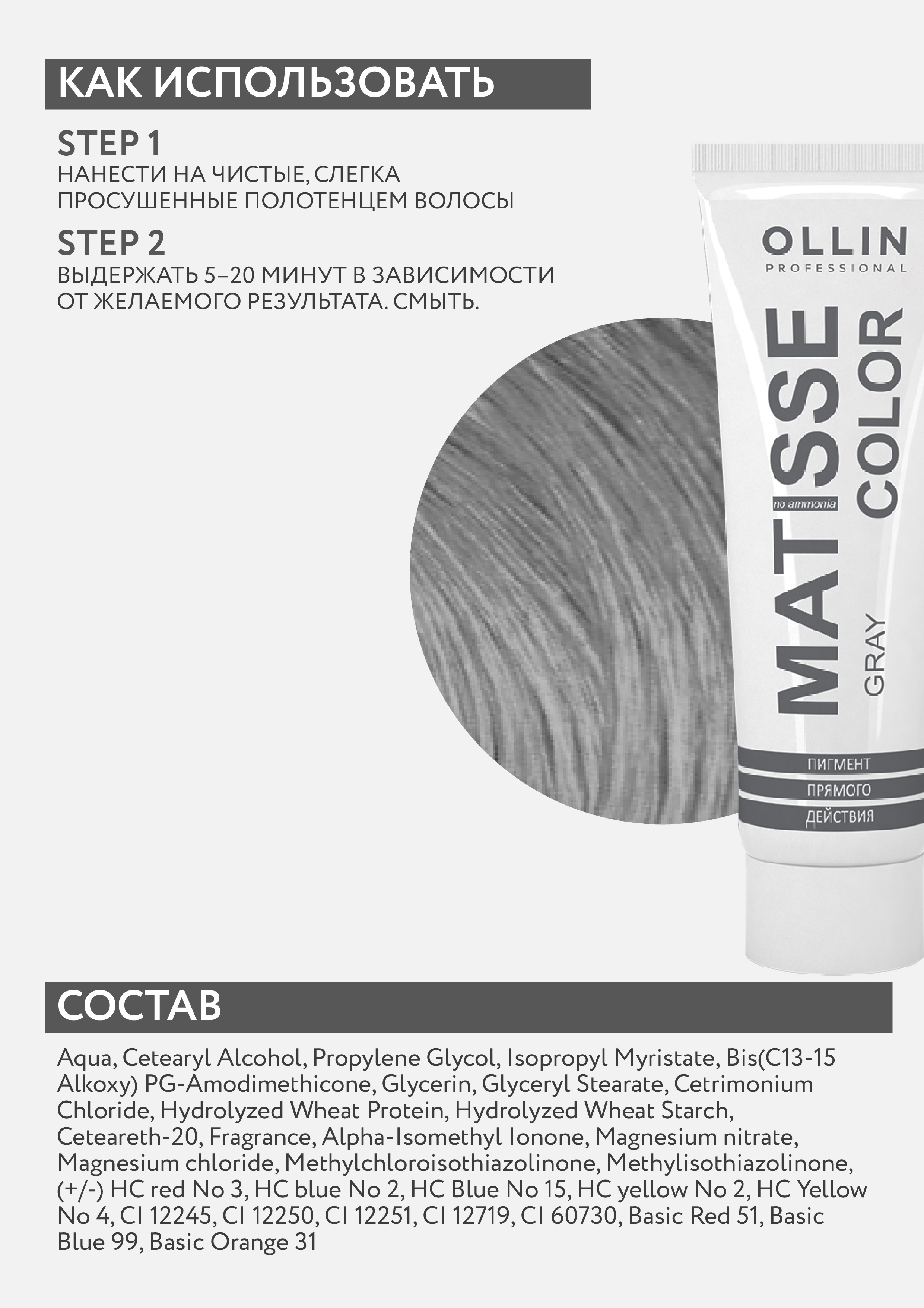 OLLIN PROFESSIONAL Пигмент MATISSE COLOR прямого действия серый 100 мл